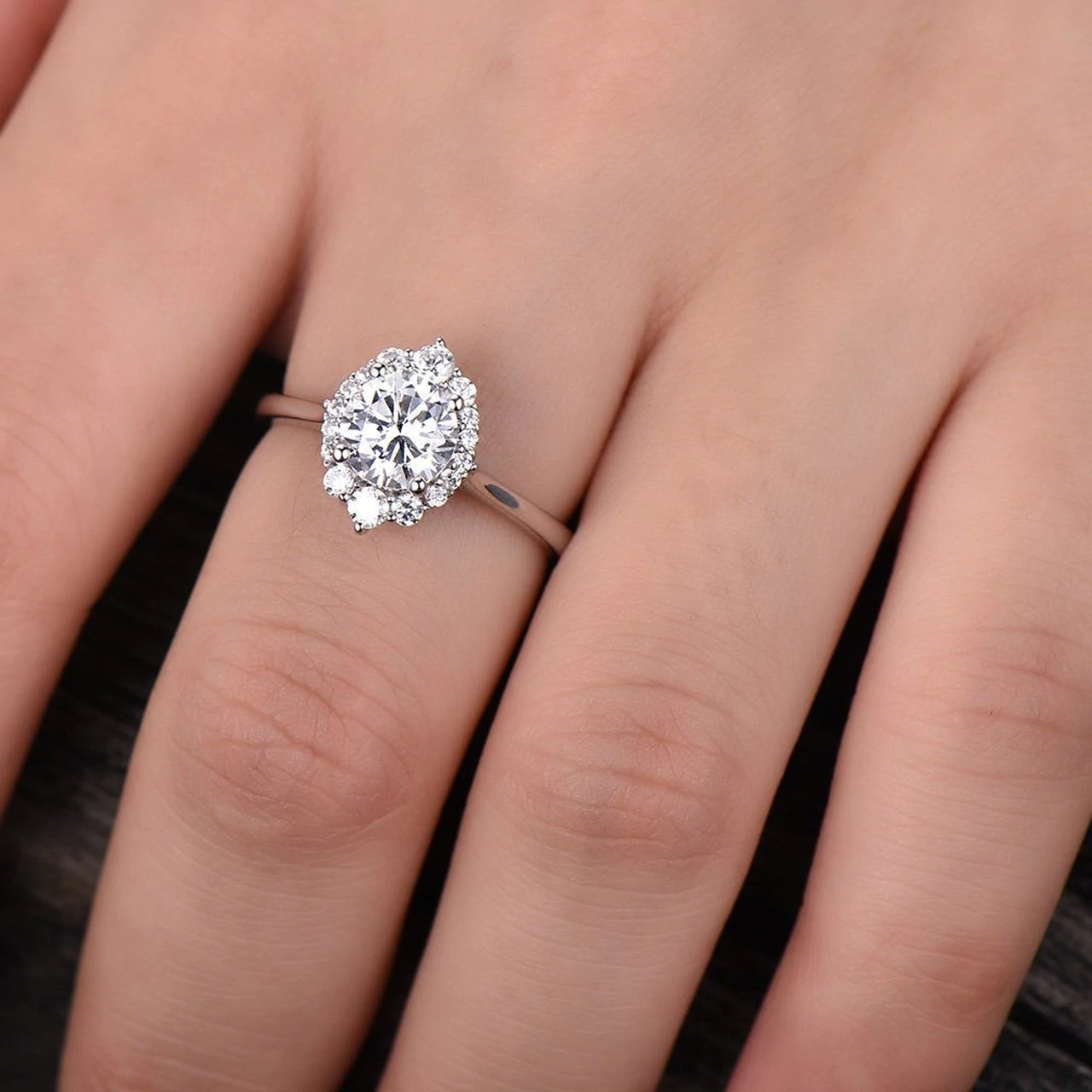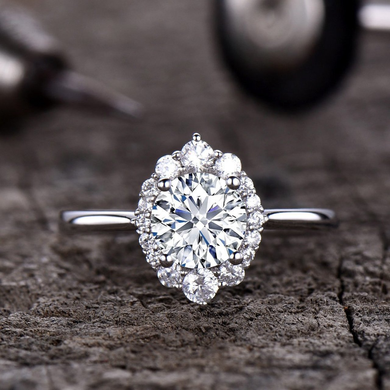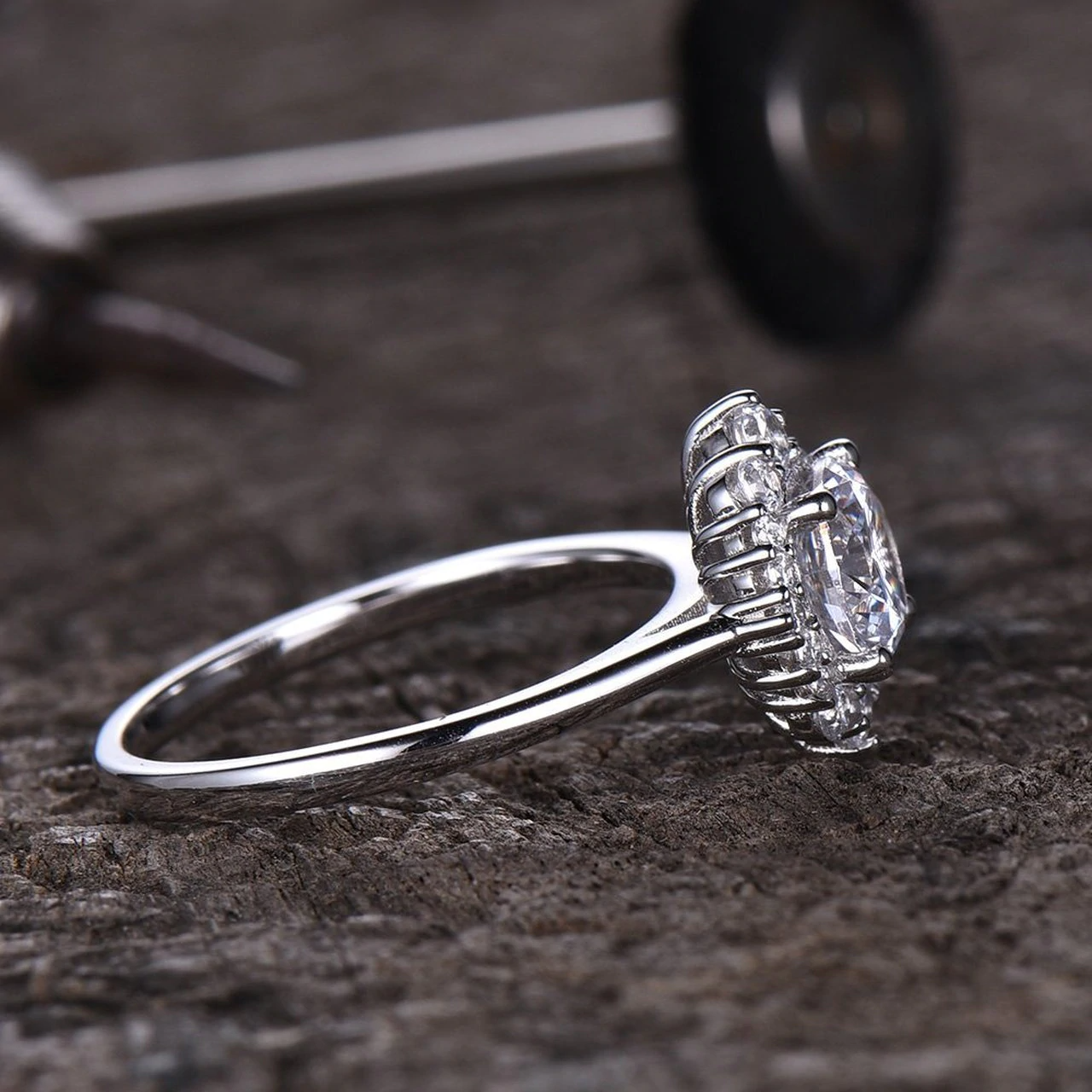 2ct Engagement Ring Round Cut Diamond Halo Solitaire Design 14k White Gold Over