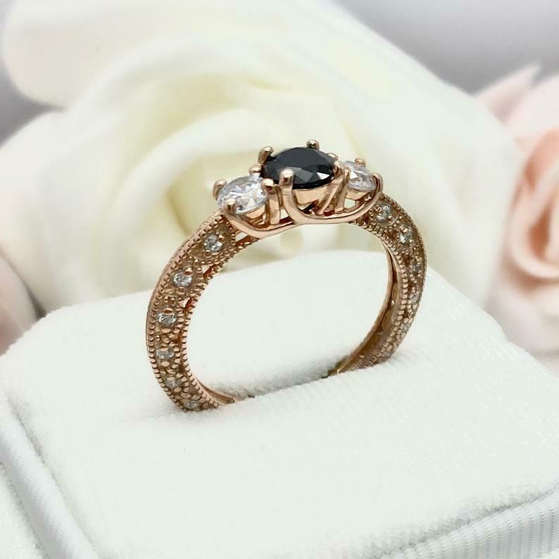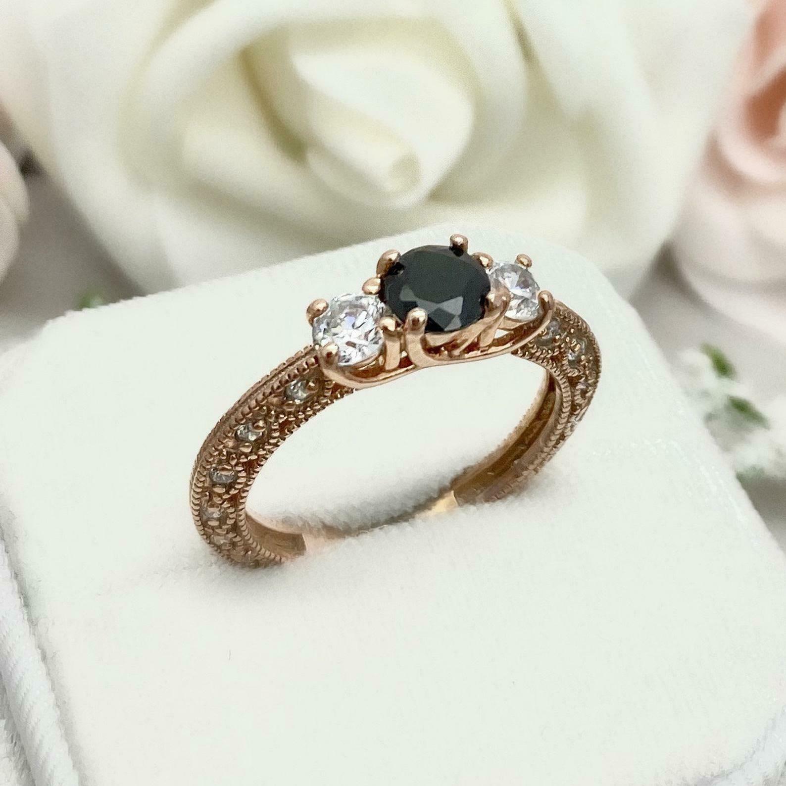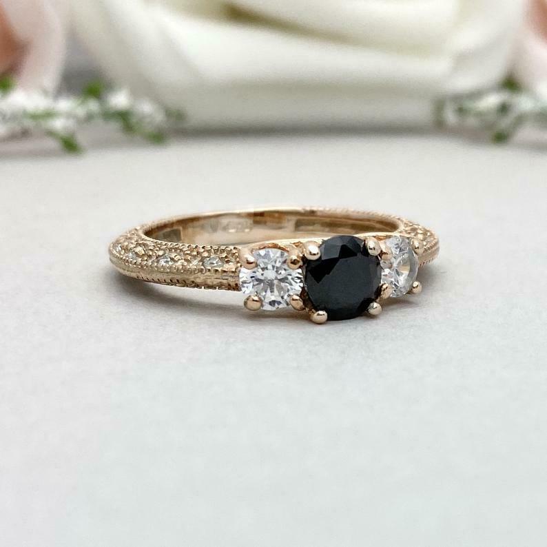 2ct Engagement Ring Round Cut Diamond Milgrain Trilogy Vintage 14k Rose Gold Over