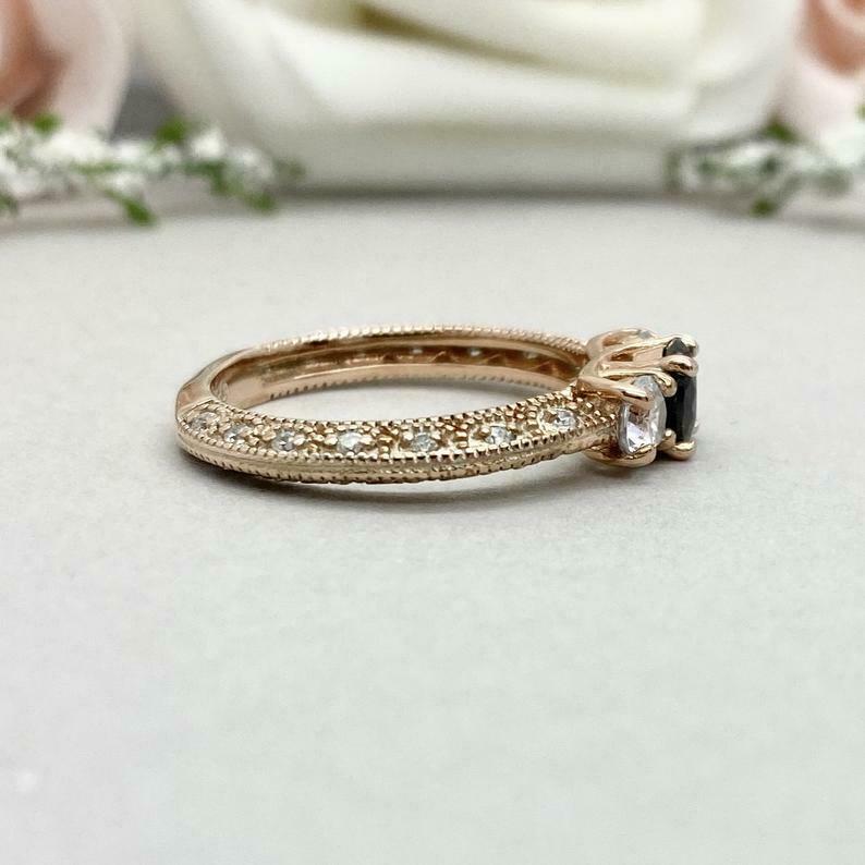 2ct Engagement Ring Round Cut Diamond Milgrain Trilogy Vintage 14k RoseGold Over