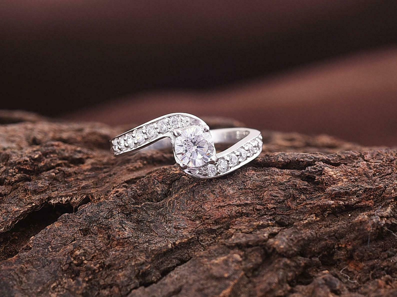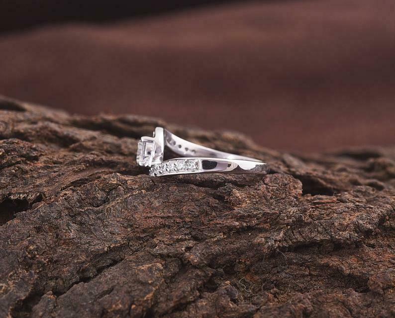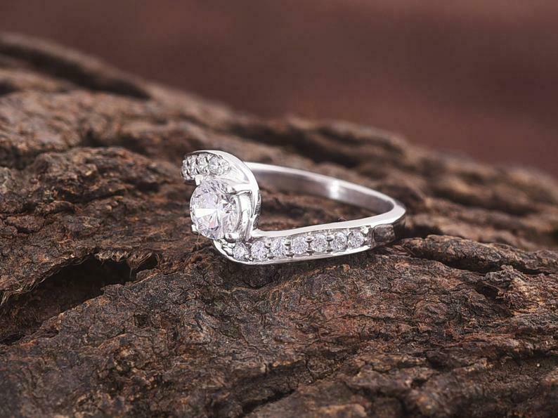 2ct Engagement Ring Round Cut Diamond Swirl Round Accents 14k White Gold Finish