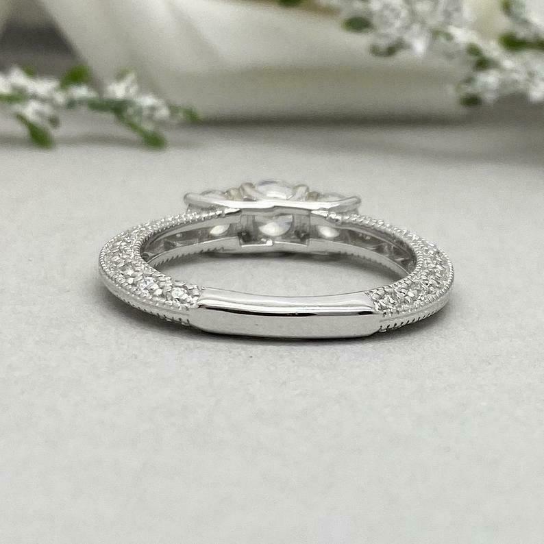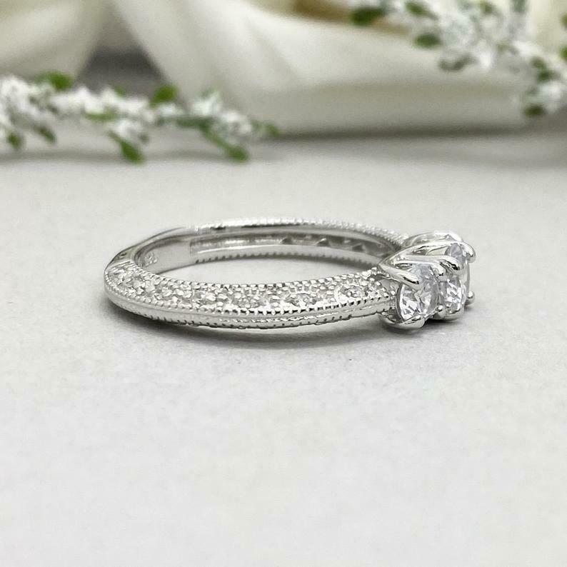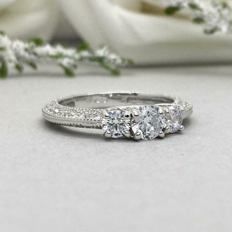 2ct Engagement Ring Round Diamond Milgrain Trilogy Vintage 14k White Gold Finish