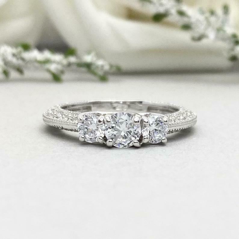 2ct Engagement Ring Round Cut Diamond Milgrain Trilogy Vintage 14k White Gold Finish