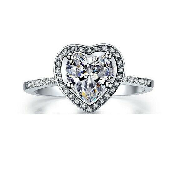 2ct Heart Cut Diamond Accents Solitaire Engagement Ring 14k White Gold Finish
