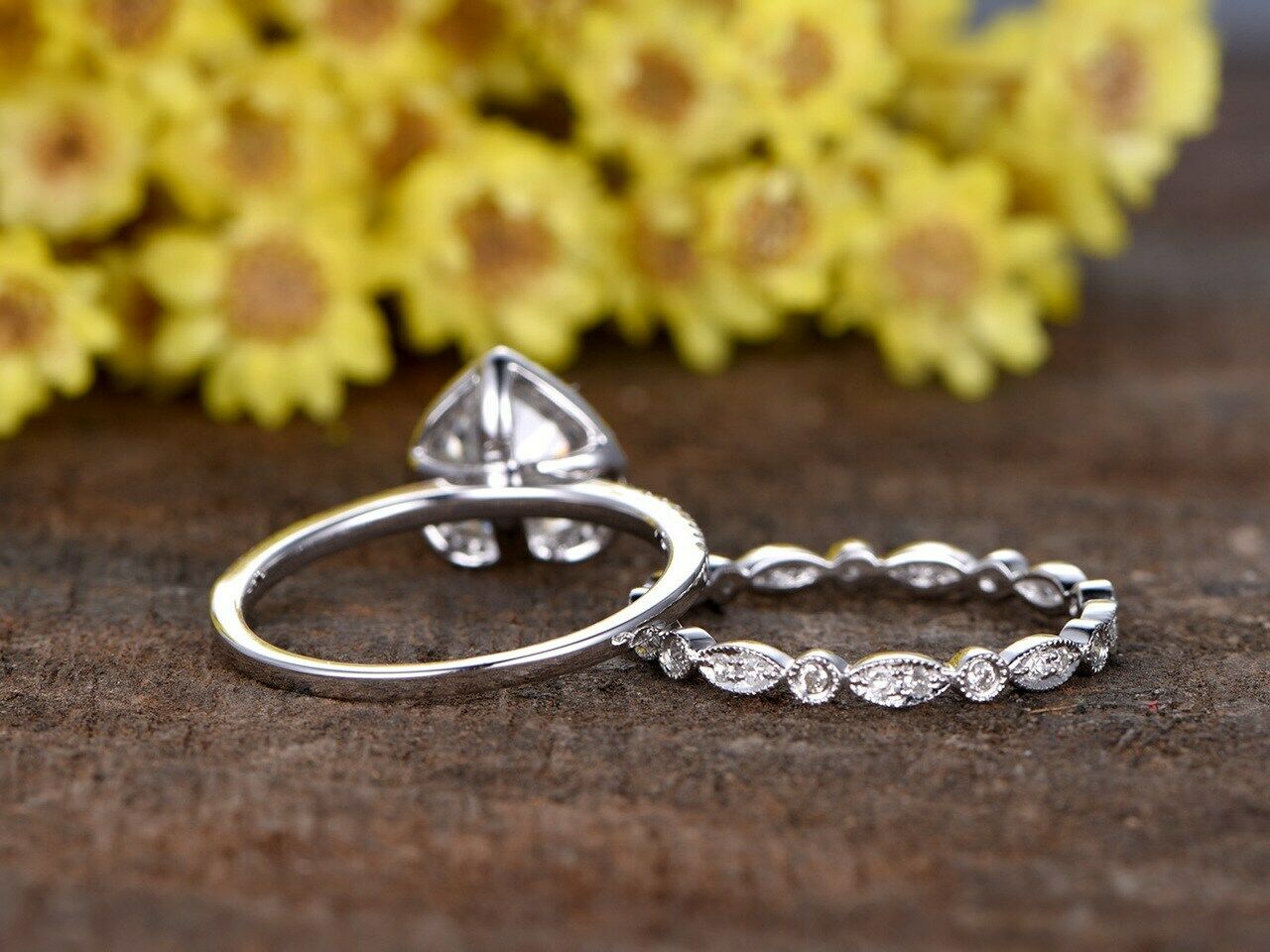 2Ct Heart Cut Diamond Bridal Set Vintage Engagement Ring 14K White Gold Finish