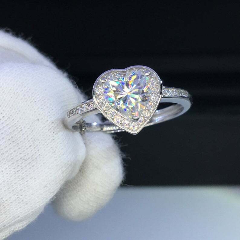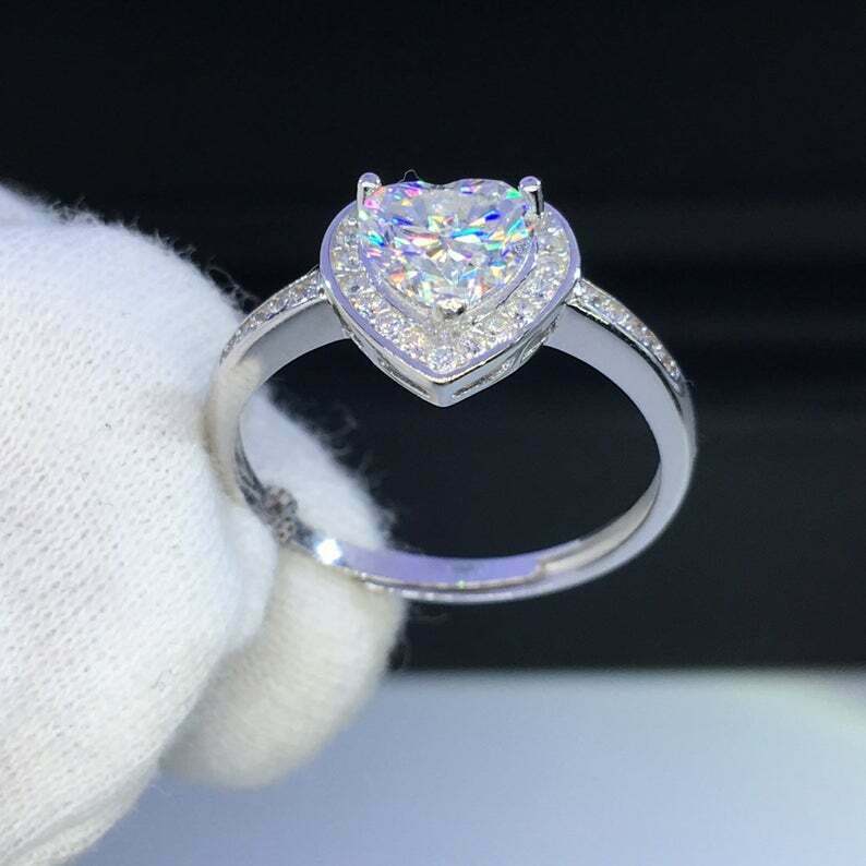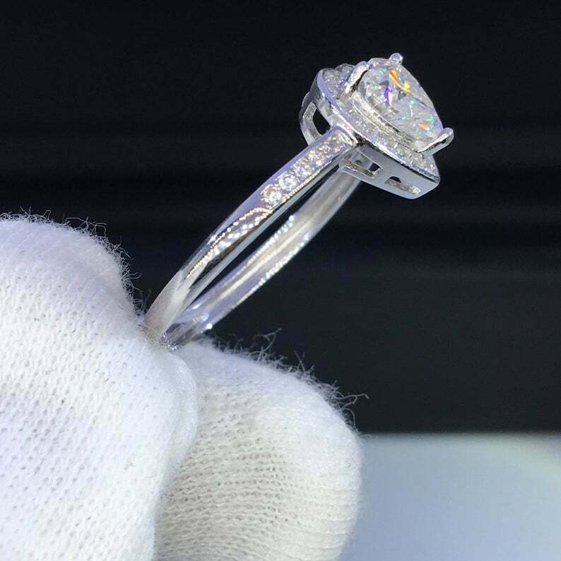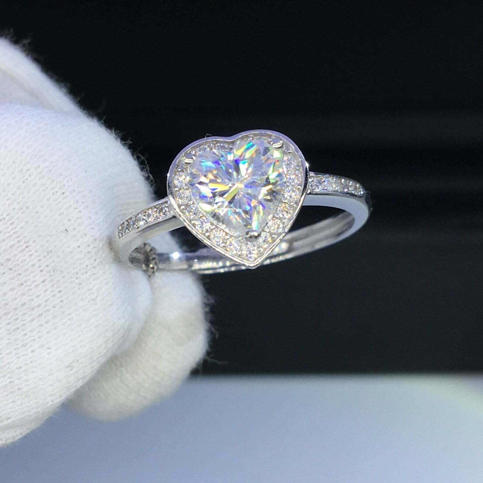 2ct Heart Cut Diamond Engagement Ring Halo 18k White Gold Over with Round Accent