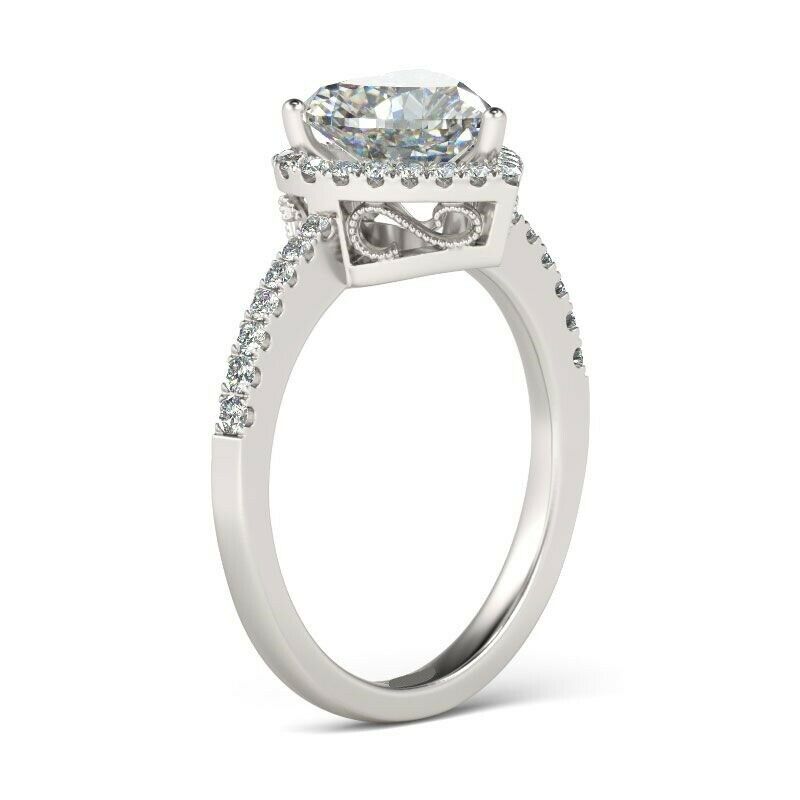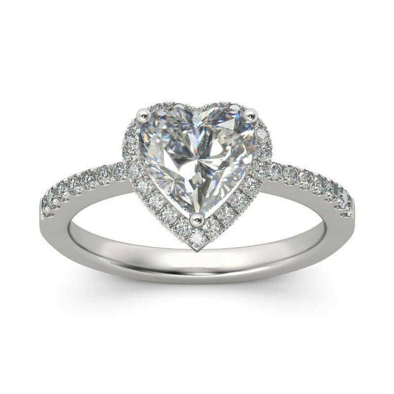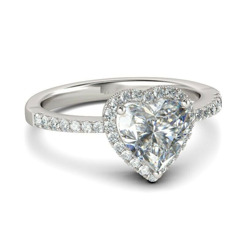 2ct Heart Cut Diamond Halo Accents Solitaire Engagement Ring 14k White Gold Over