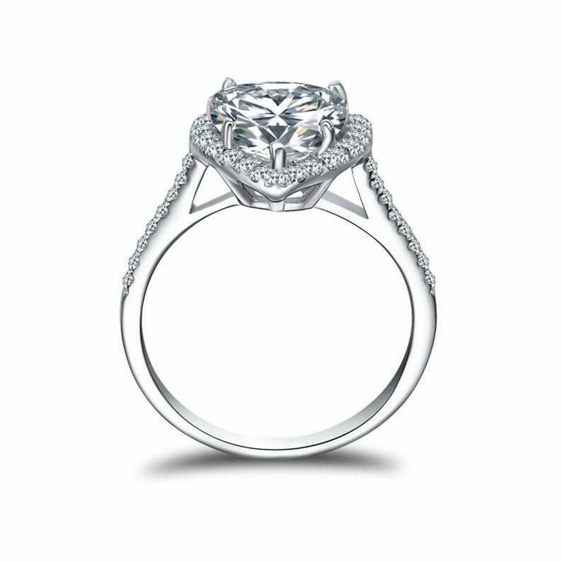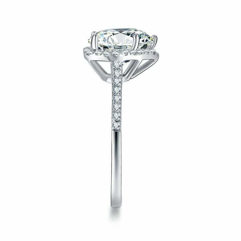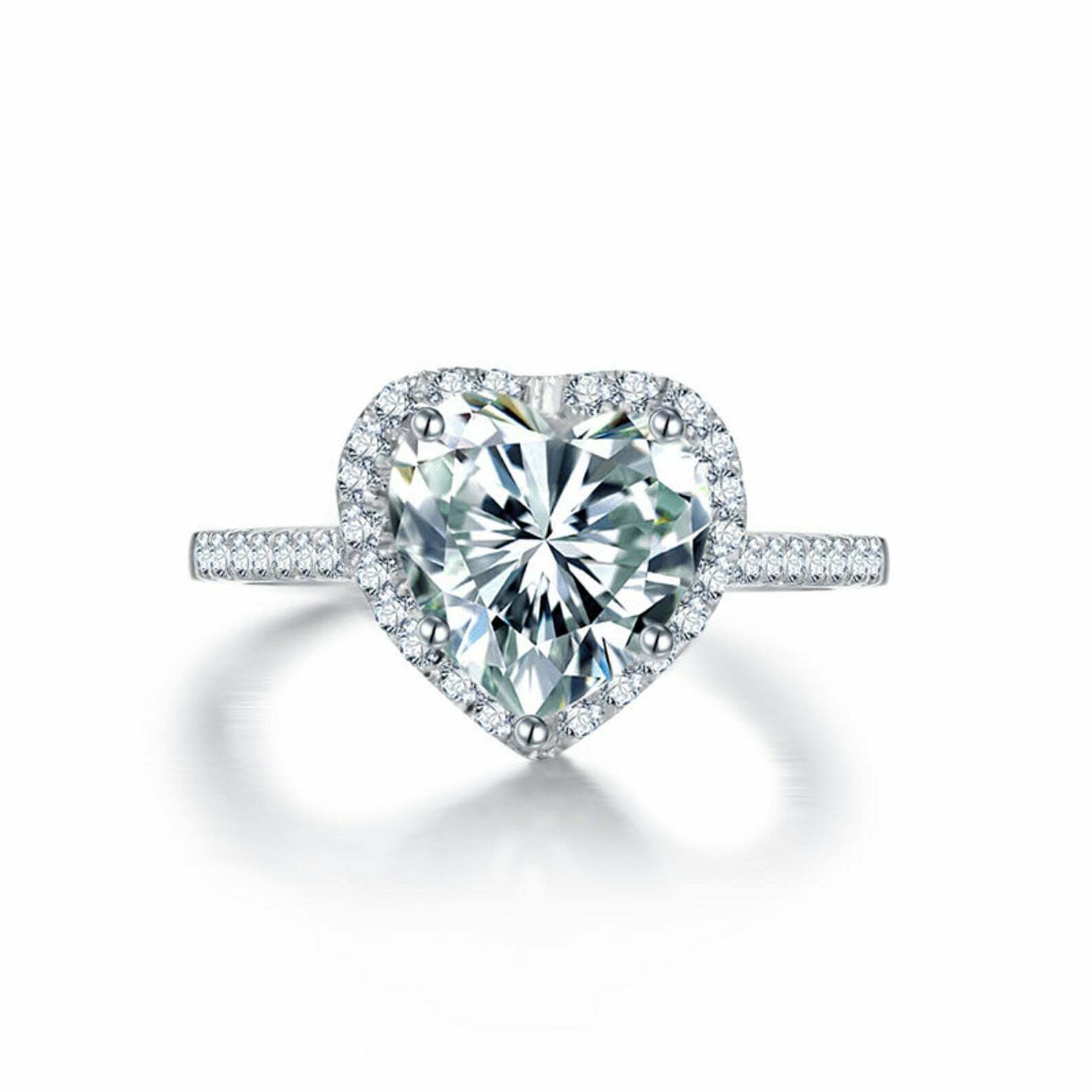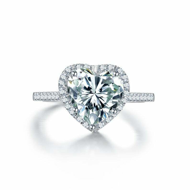2ct Heart Cut Diamond Halo Engagement Ring 14k White Gold Over with Round Accent