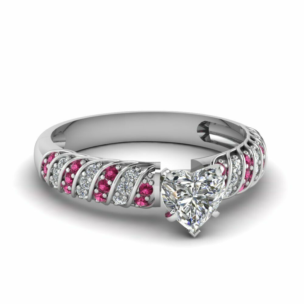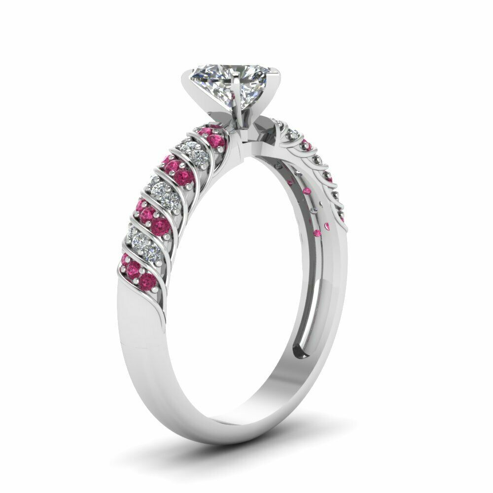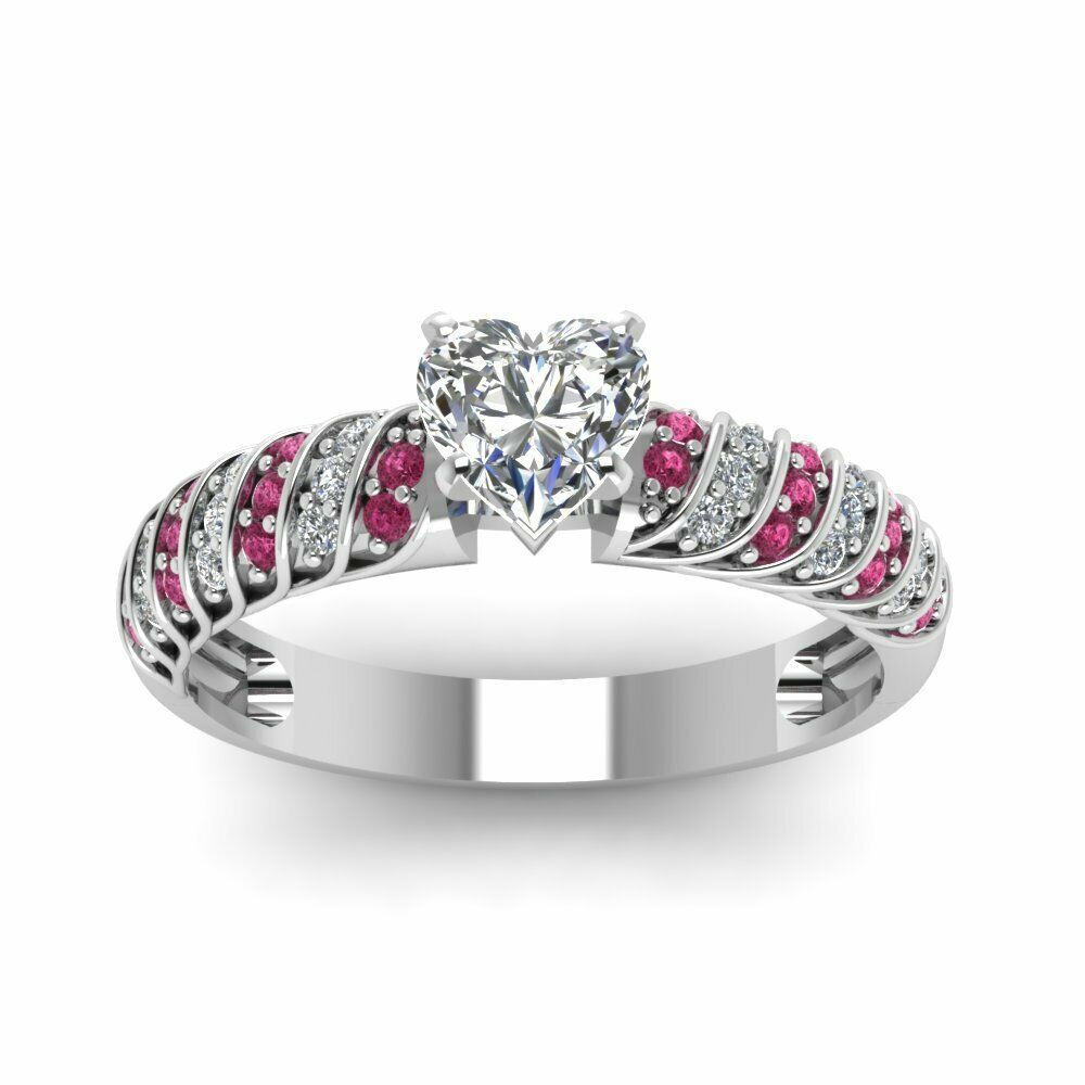 2ct Heart Cut Diamond Pink Sapphire Solitaire Engagement Ring 14k WhiteGold Over