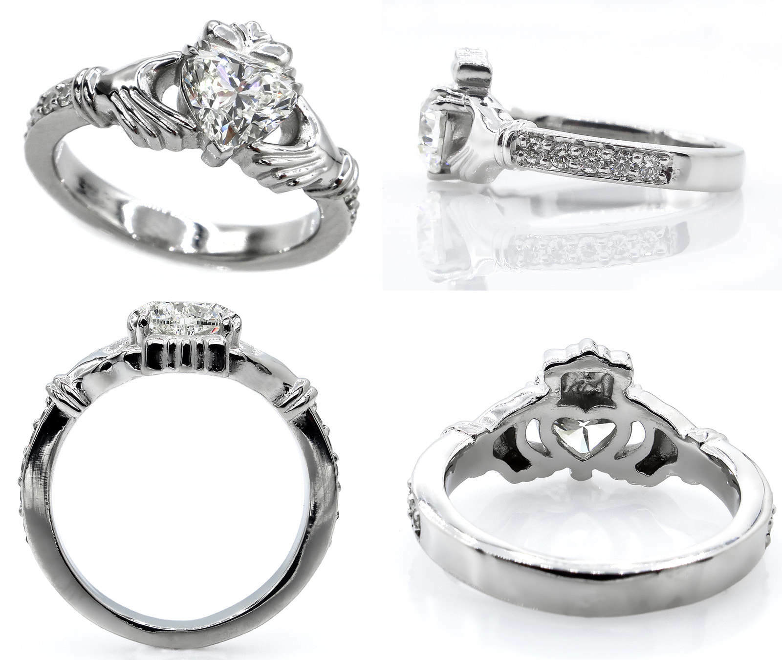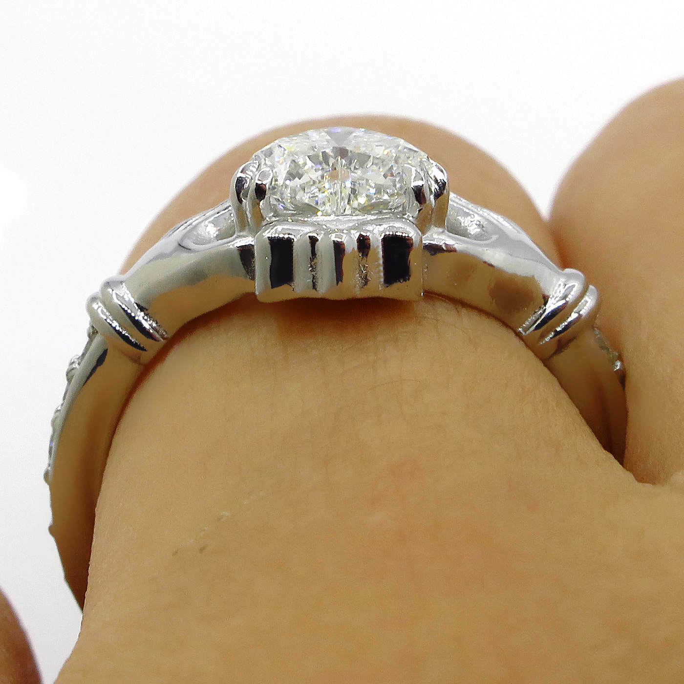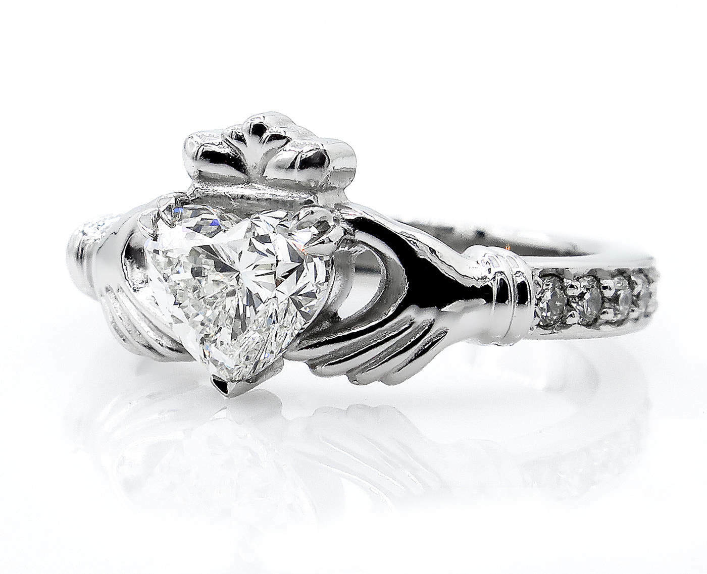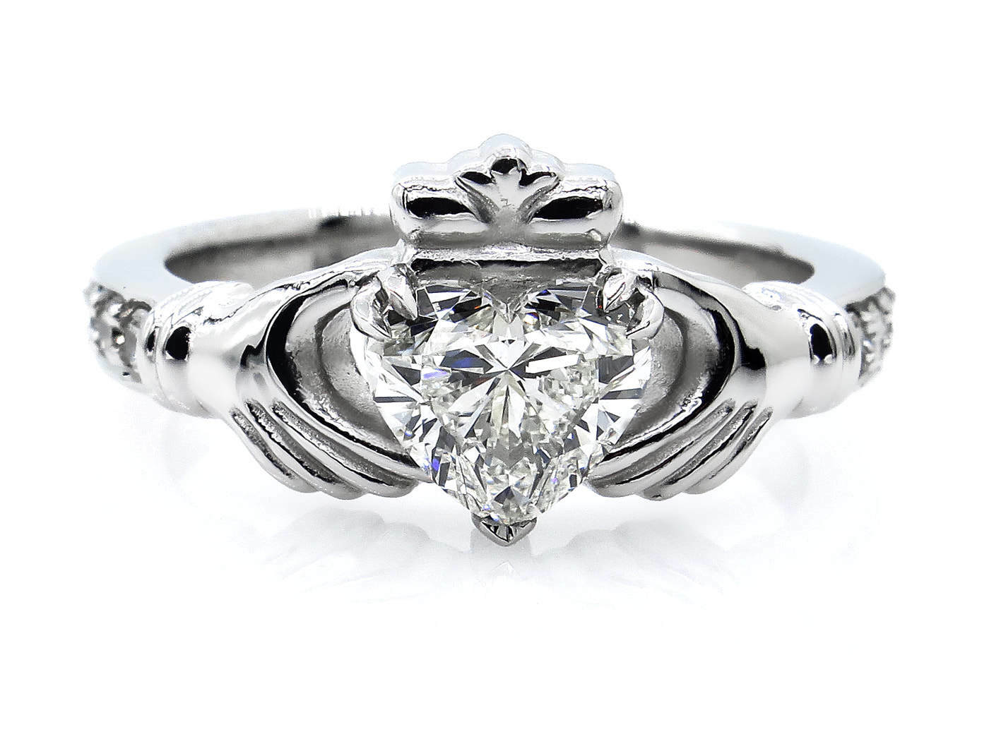 2Ct Heart Cut Diamond Solitaire Engagement Claddagh Ring 14K White Gold Finish