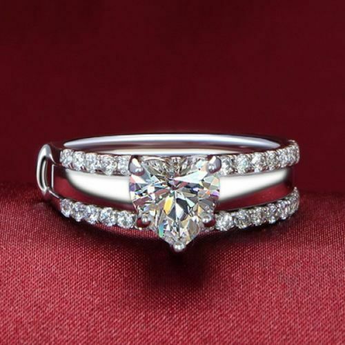 2Ct Heart Cut Diamond Solitaire Engagement Ring 14K White Gold Over Round Accent