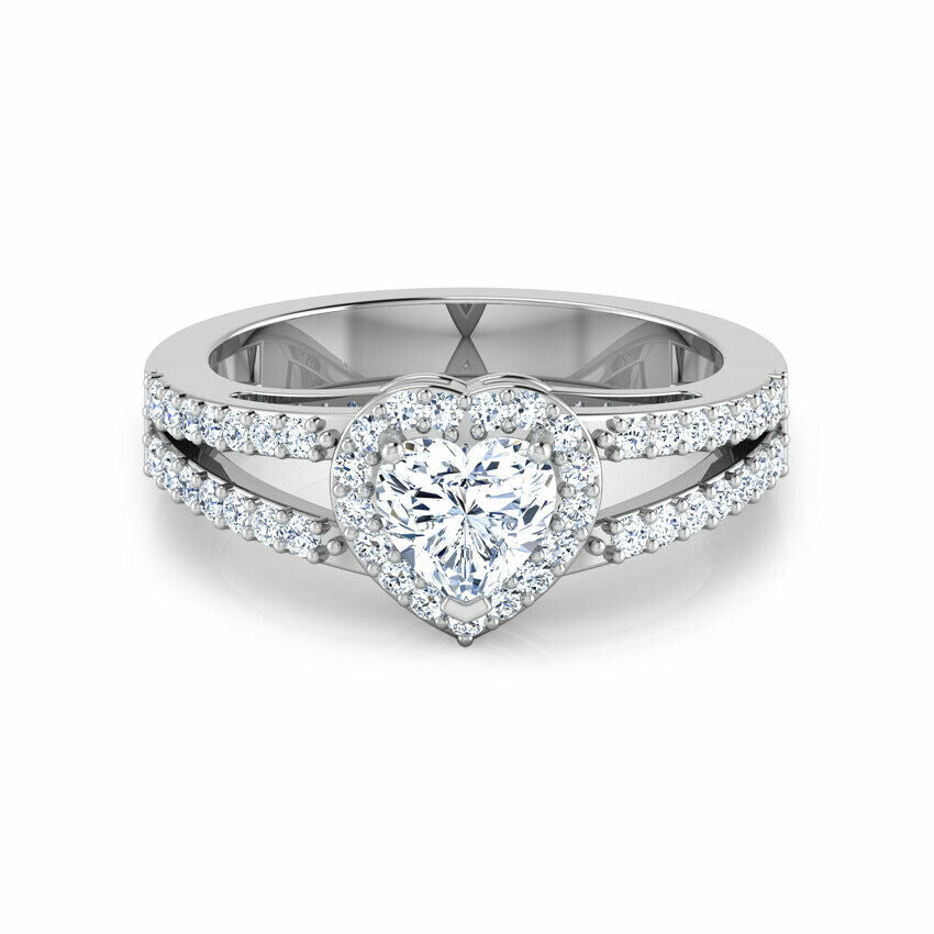 2Ct Heart Cut Diamond Split Shank Solitaire Engagement Ring 18K White Gold Over