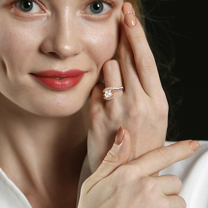 2Ct Heart Cut Diamond Unique Swirl Solitaire Engagement Ring 14K Dual Gold Over