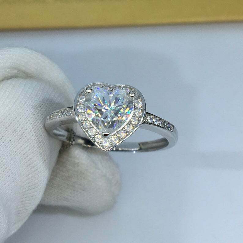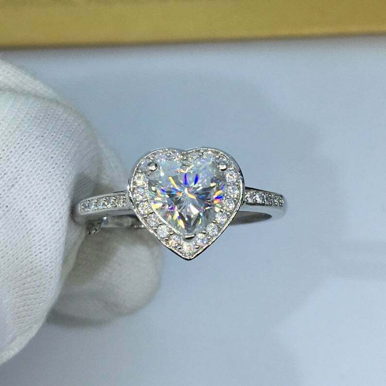 2ct Heart Cut VVS1D Diamond Halo Solitaire Engagement Ring 14k White Gold Finish
