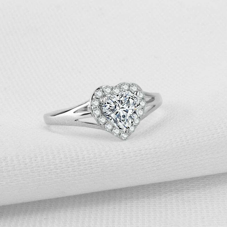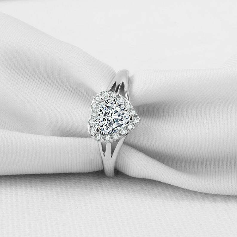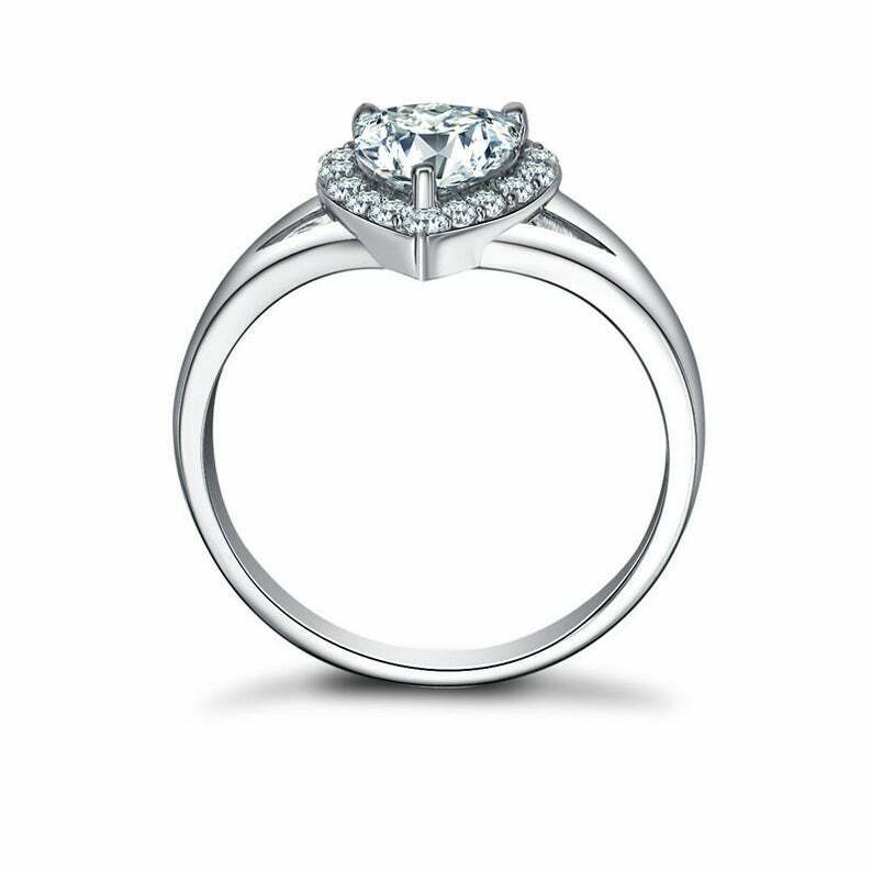 2ct Heart Diamond Engagement Ring Halo Split Band Solitaire 14k White Gold Over