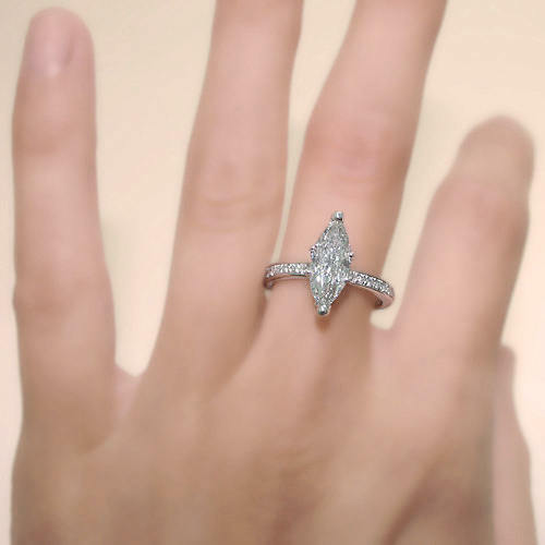 2ct Marquise Cut Diamond Accent Solitaire Engagement Ring 14k White Gold Finish