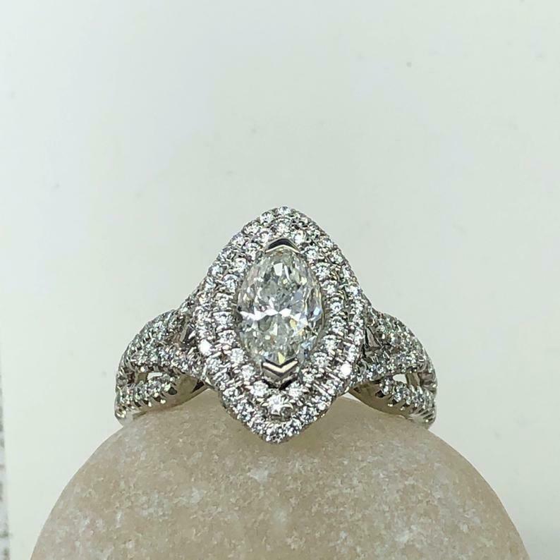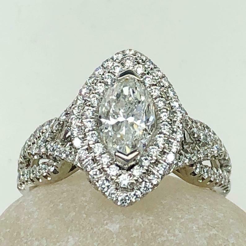 2ct Marquise Cut Diamond Dual Halo Split Band Cocktail Ring 14k WhiteGold Finish