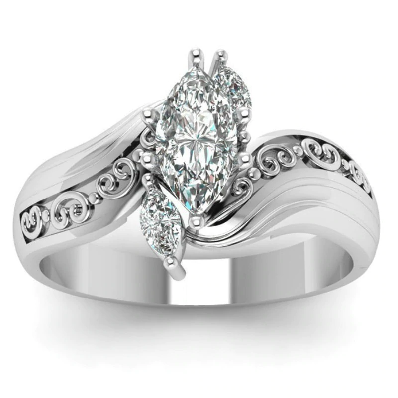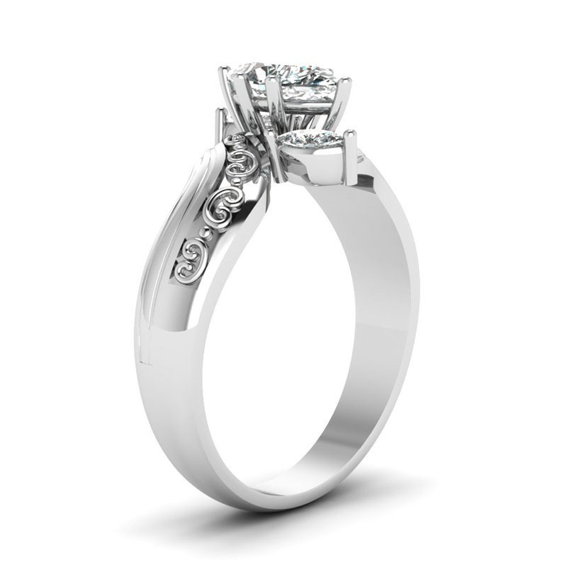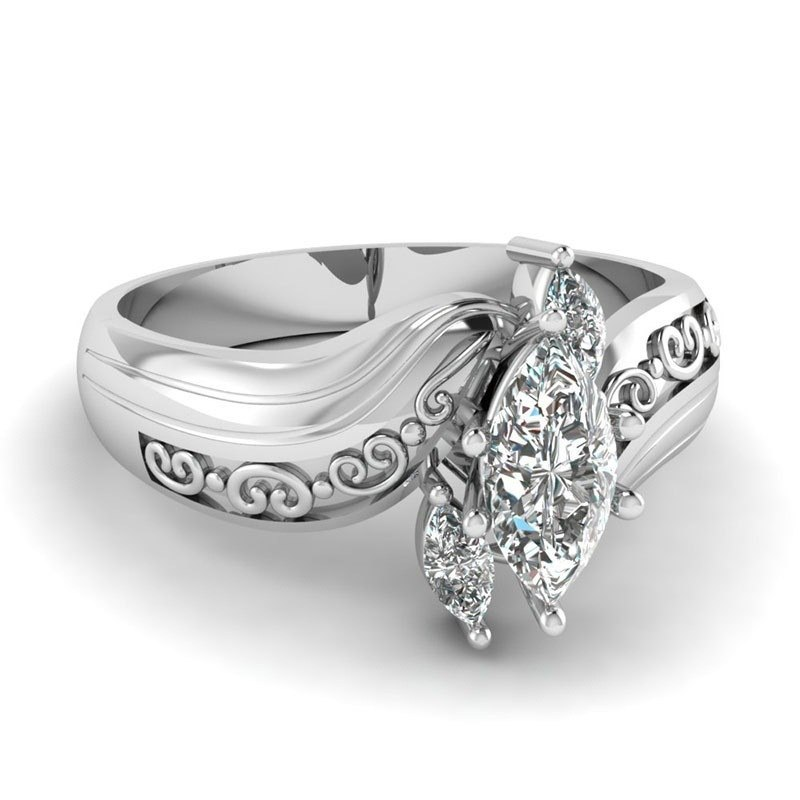 2ct Marquise Cut Diamond Engagement Ring 14k White Gold Finish Vintage Trilogy