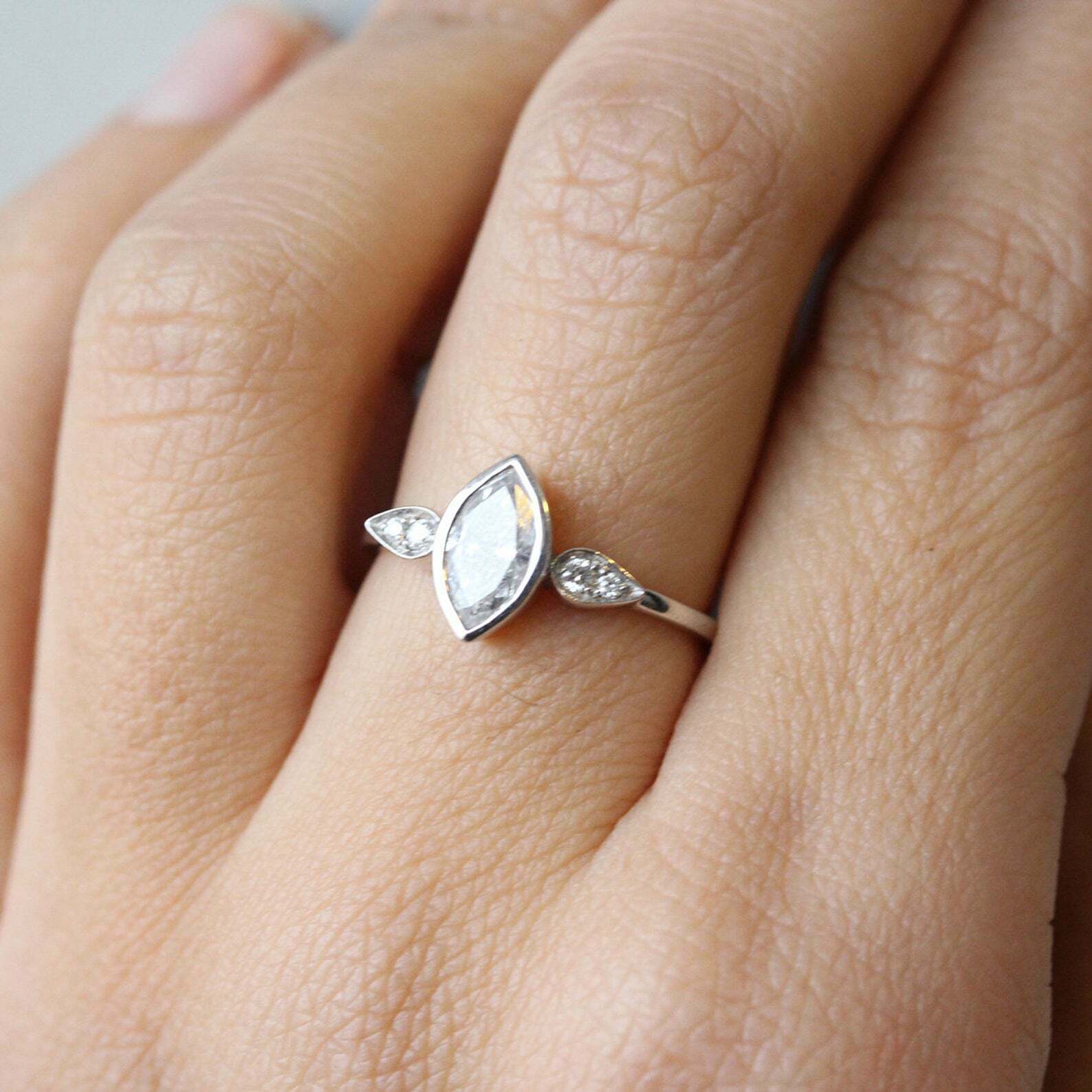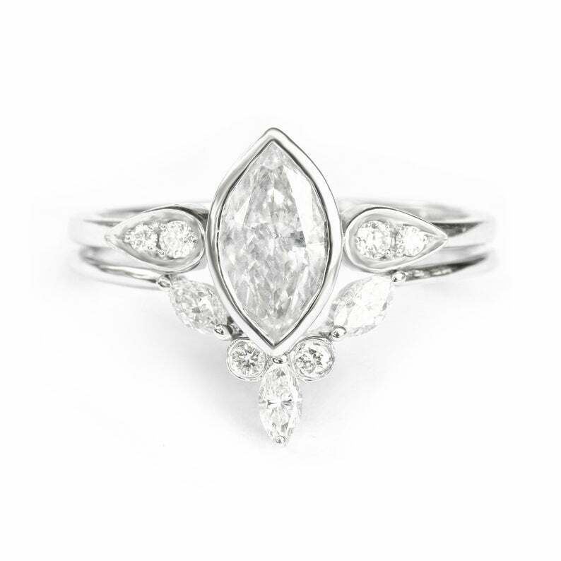 2ct Marquise Cut Diamond Engagement Ring Bezel Bridal Set 14k White Gold Finish