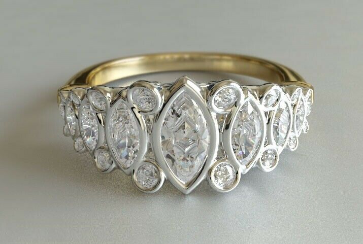 2ct Marquise Cut Diamond Engagement Ring Filigree Antique 14k Yellow Gold Finish