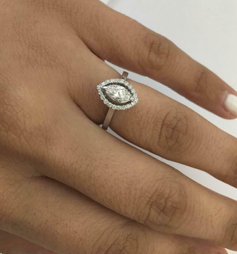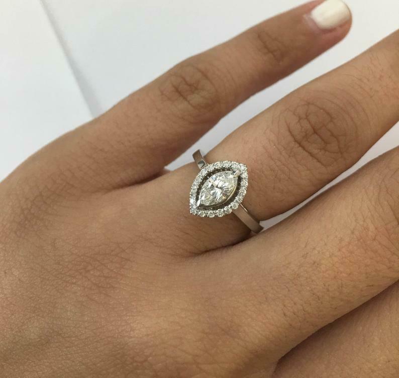 2ct Marquise Cut Diamond Engagement Ring Halo Solitaire Women 14k WhiteGold Over