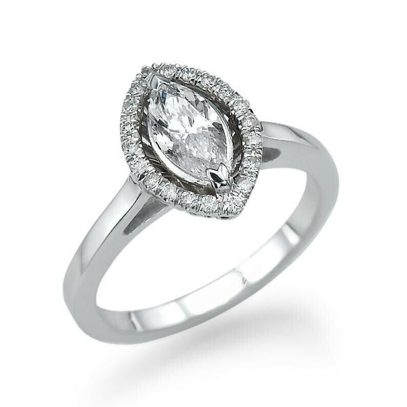 2ct Marquise Cut Diamond Engagement Ring Halo Solitaire Women 14k White Gold Over