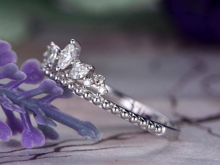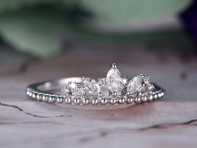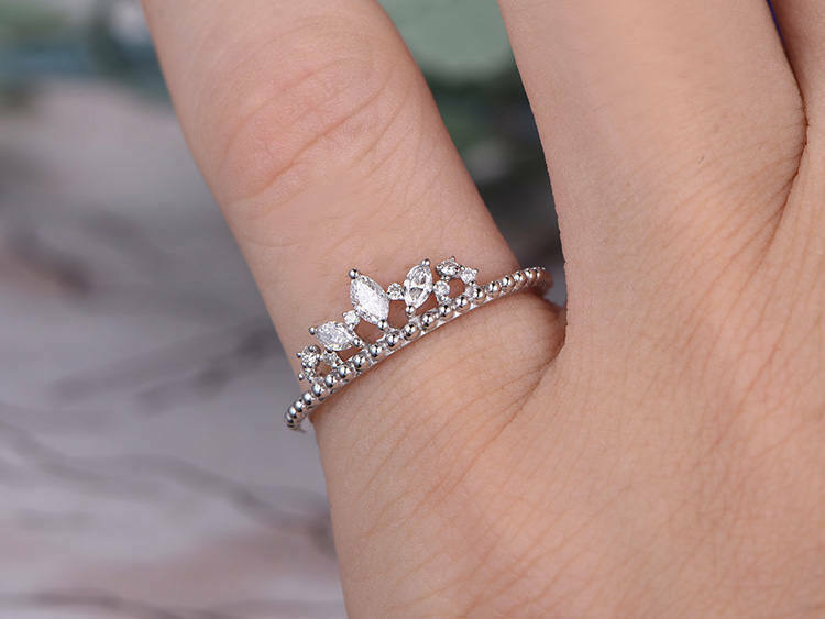 2ct Marquise Cut Diamond Engagement Ring Unique Crown Design 14k White Gold Over