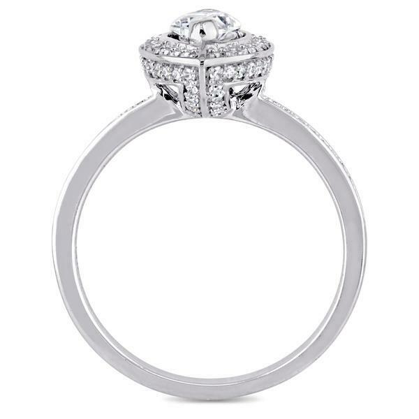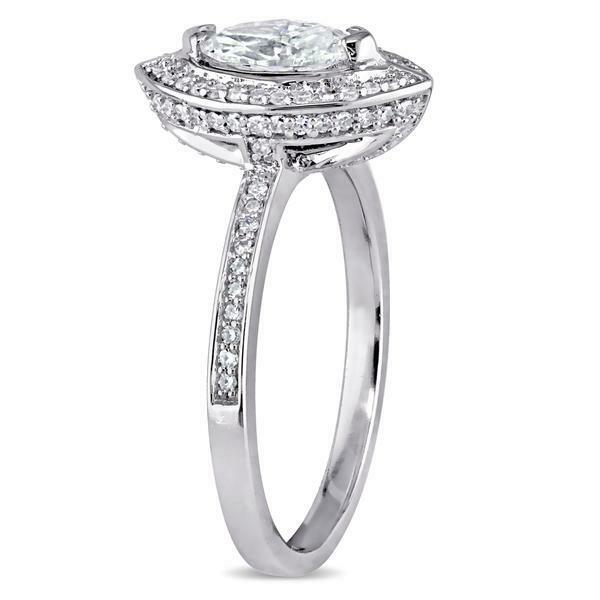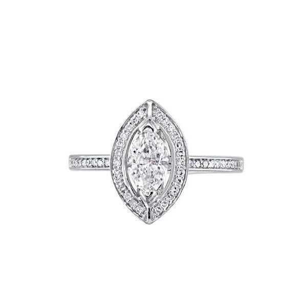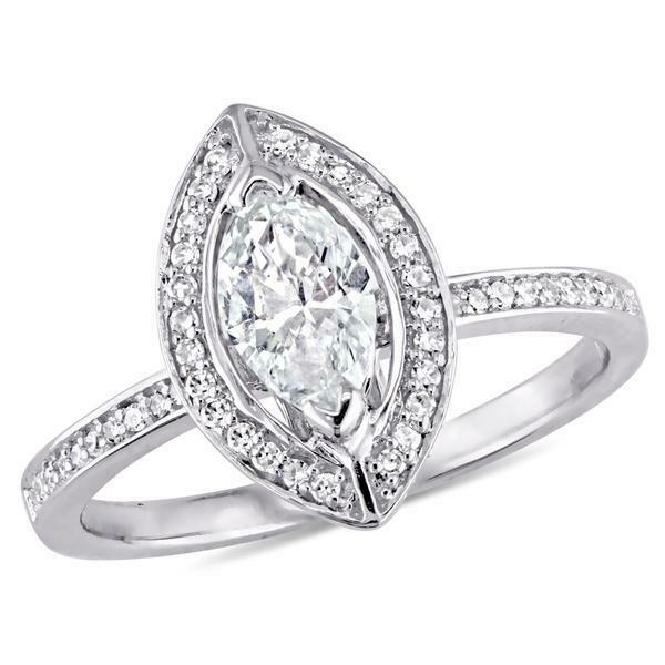 2Ct Marquise Cut Diamond Halo Engagement Ring 14K White Gold Finish Round Accent