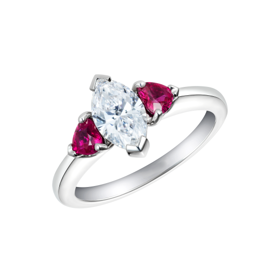 2Ct Marquise Cut Diamond Heart Cut Ruby Accent Trilogy Ring 14K White Gold Over