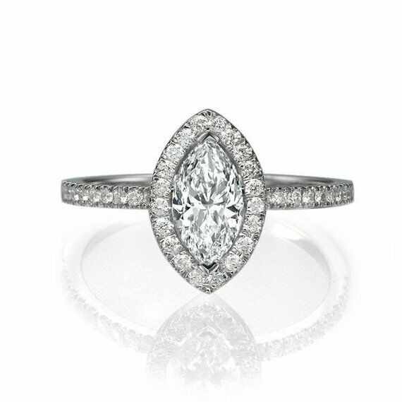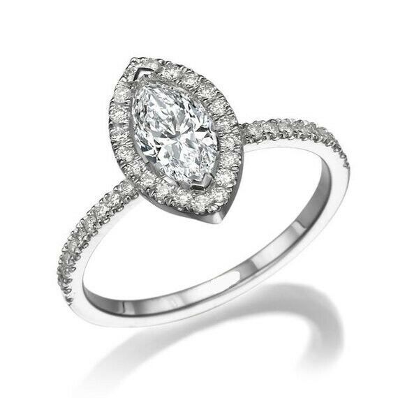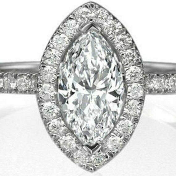 2ct Marquise Cut VVS1 Diamond Accents Halo Engagement Ring 14k White Gold Finish