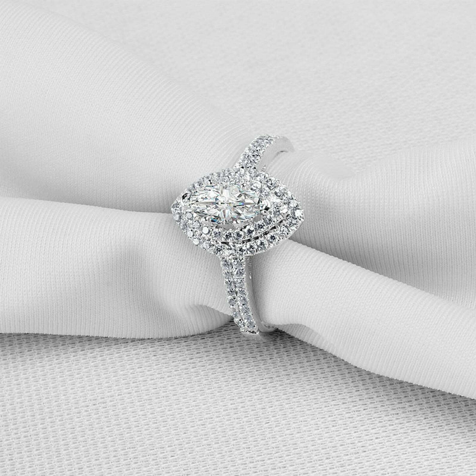 2ct Marquise Cut VVS1D Diamond Engagement Ring Double Halo 14k White Gold Finish