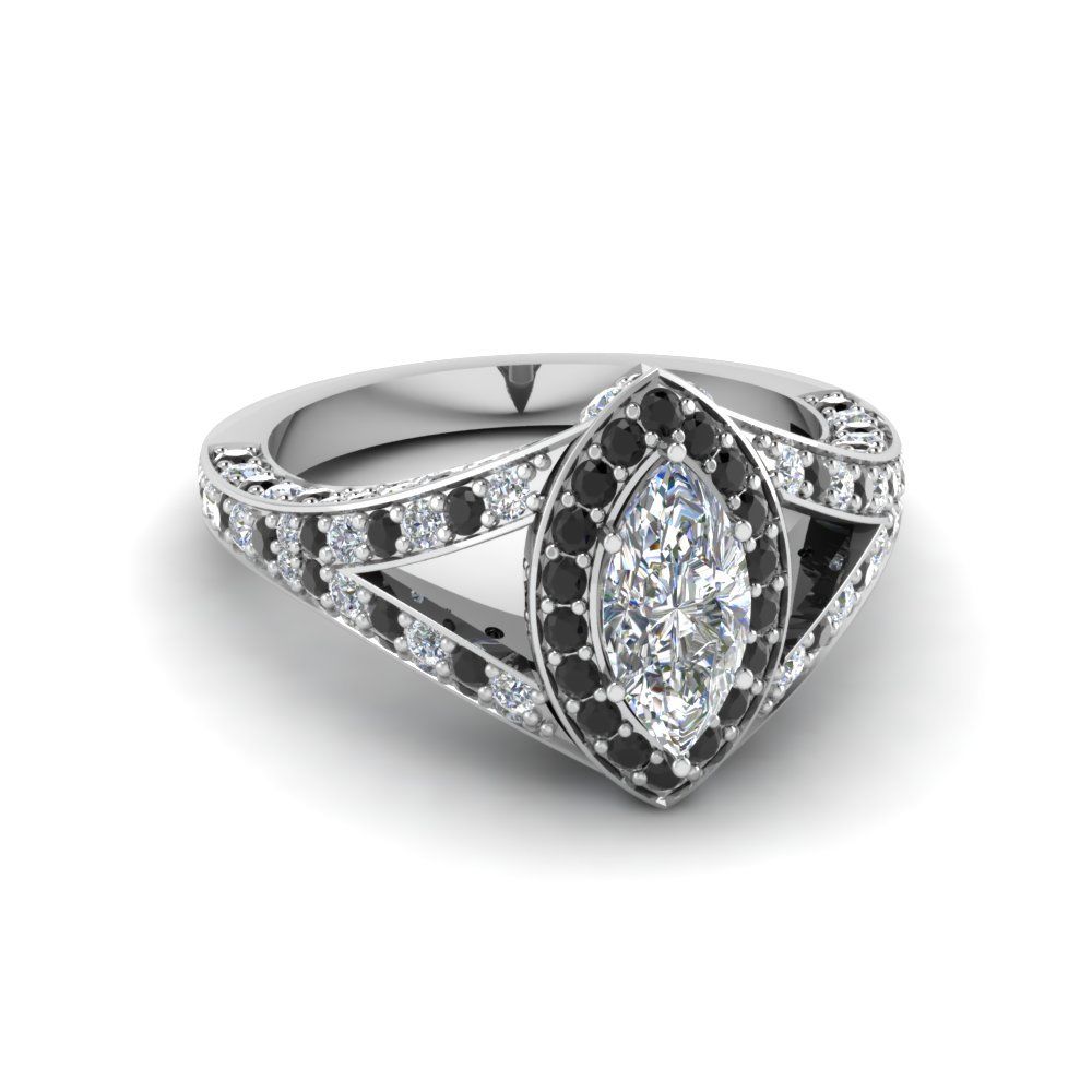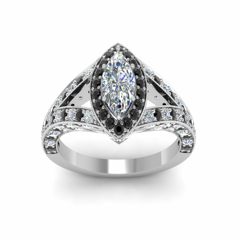 2ct Marquise Diamond Black Vintage Engagement Ring 14k White Gold Finish New