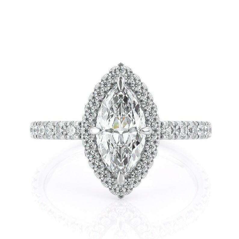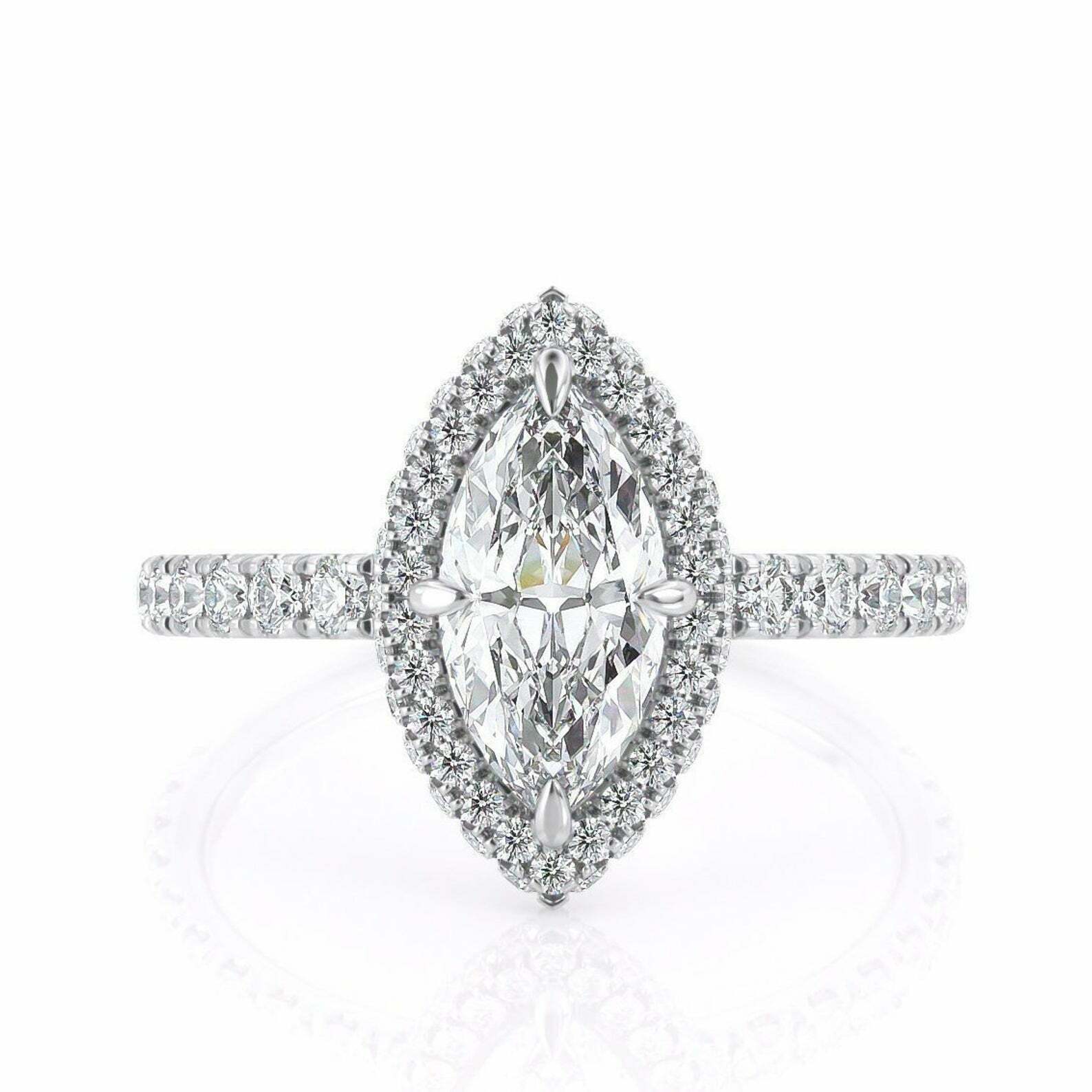2ct Marquise Diamond Engagement Ring Accent Halo Solitaire 14k White Gold Finish