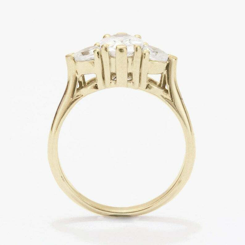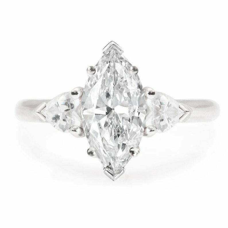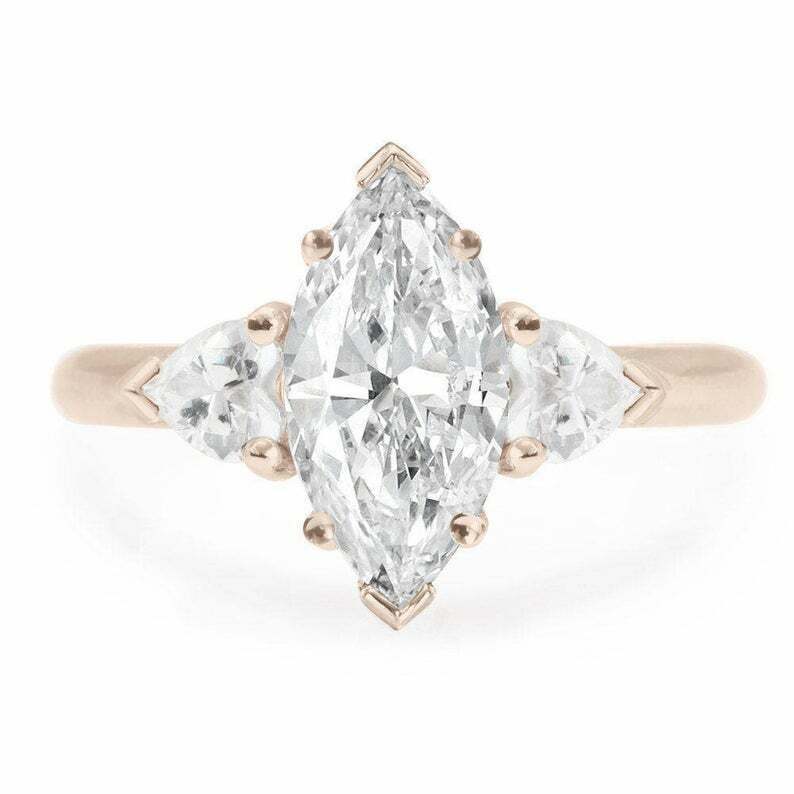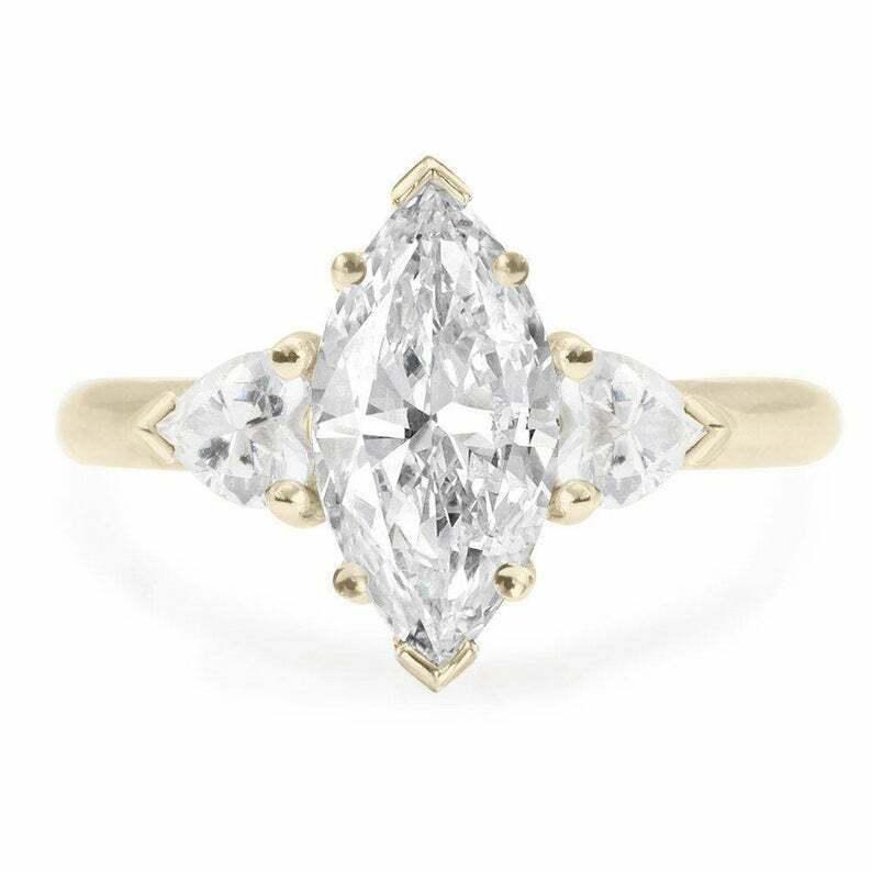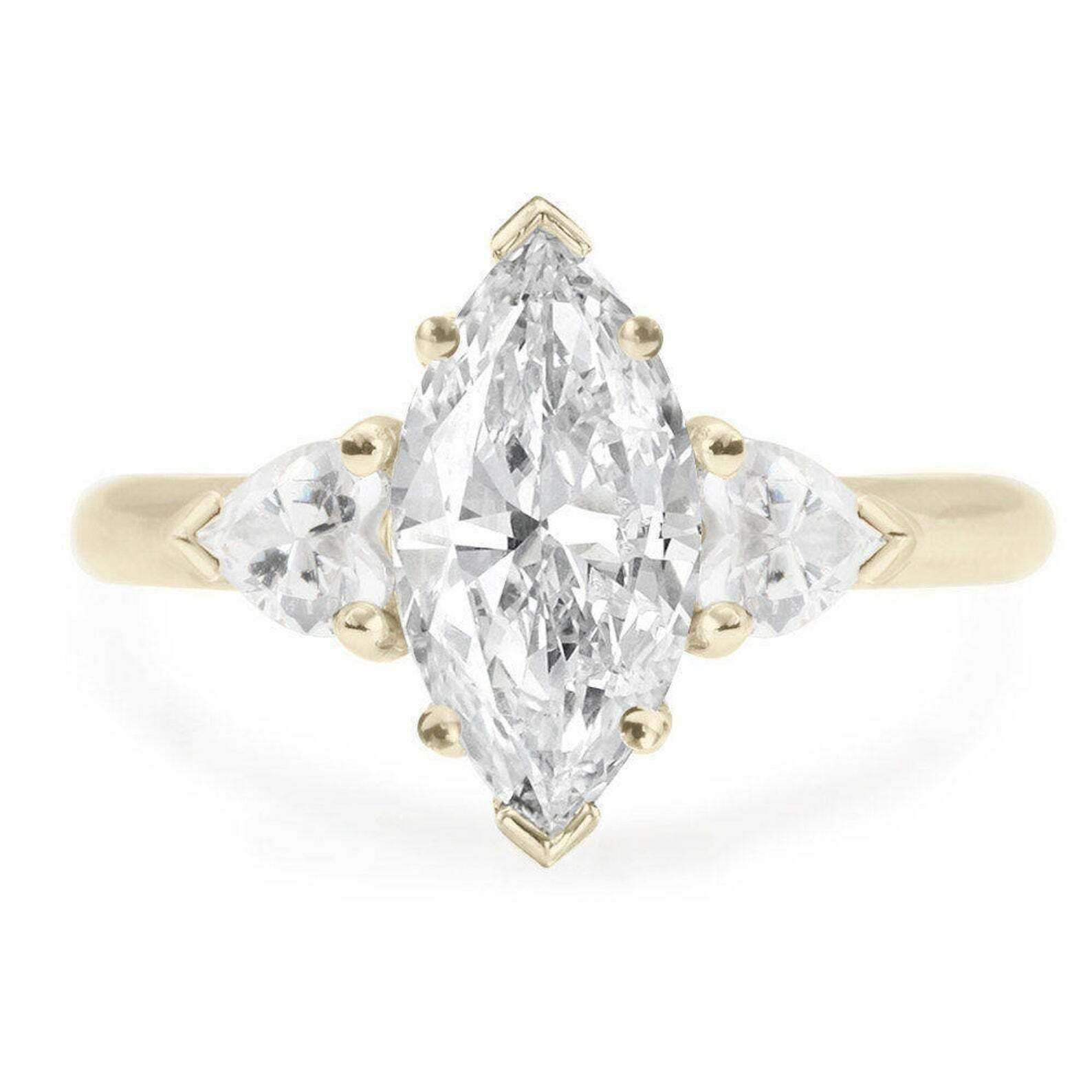 2ct Marquise Diamond Engagement Ring Heart Accent Trilogy 14k Yellow Gold Finish
