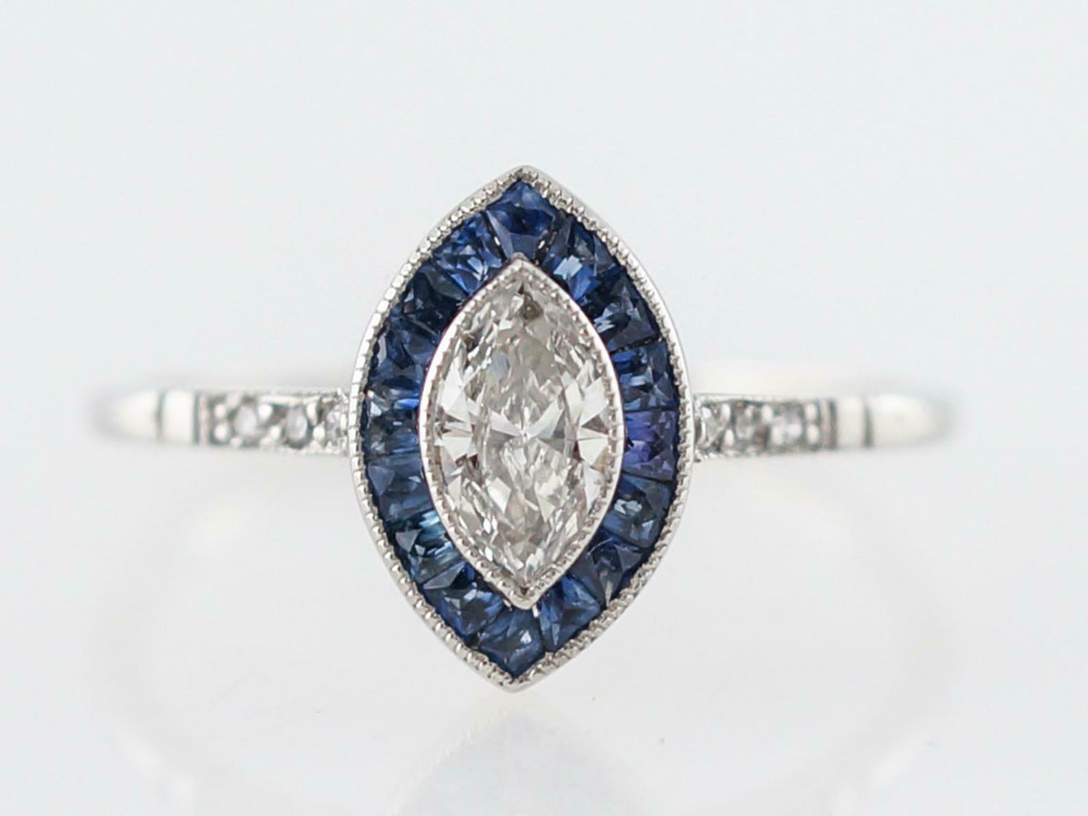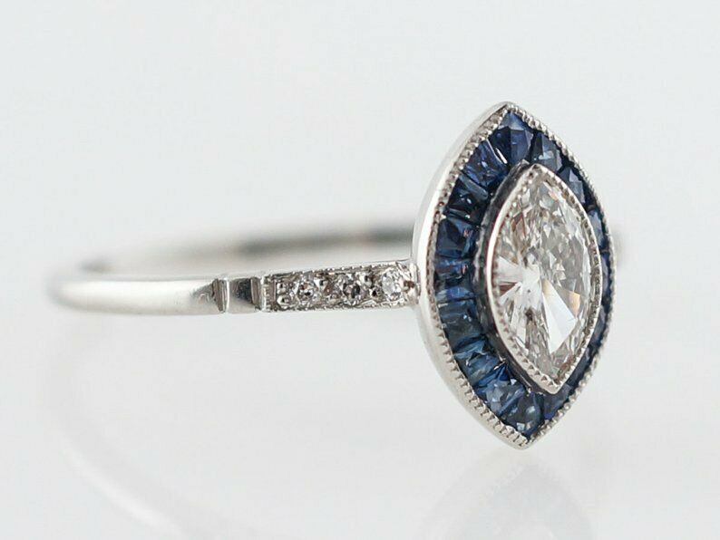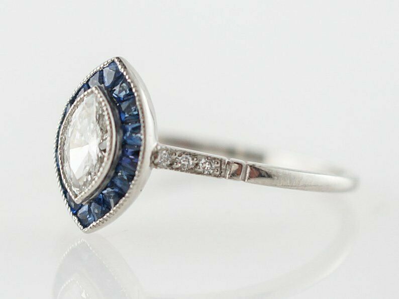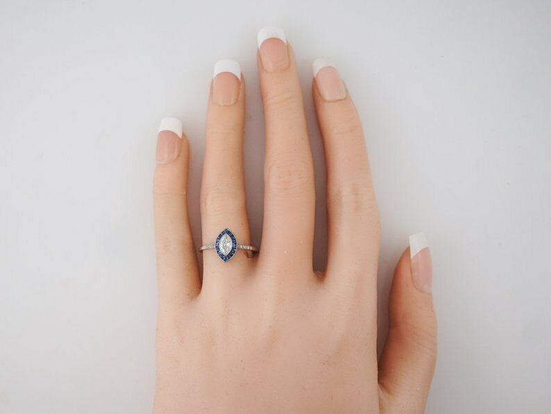 2ct Marquise Diamond Sapphire Halo Art Deco Engagement Ring 14k White Gold Over