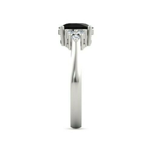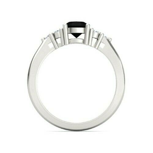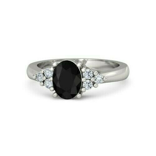 2Ct Oval Black Diamond Petite Round Accent Engagement Ring 14K White Gold Finish