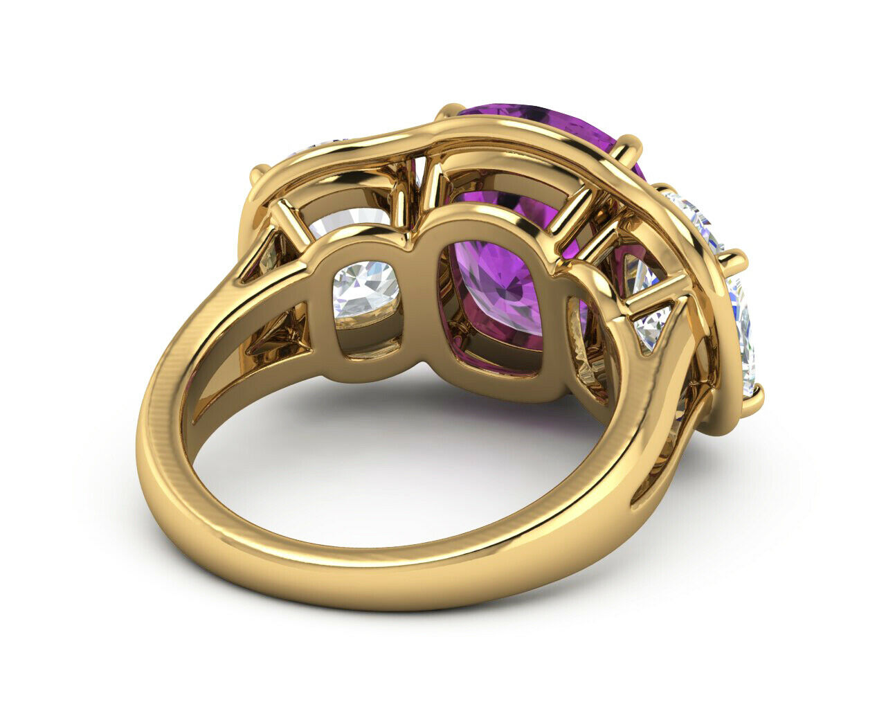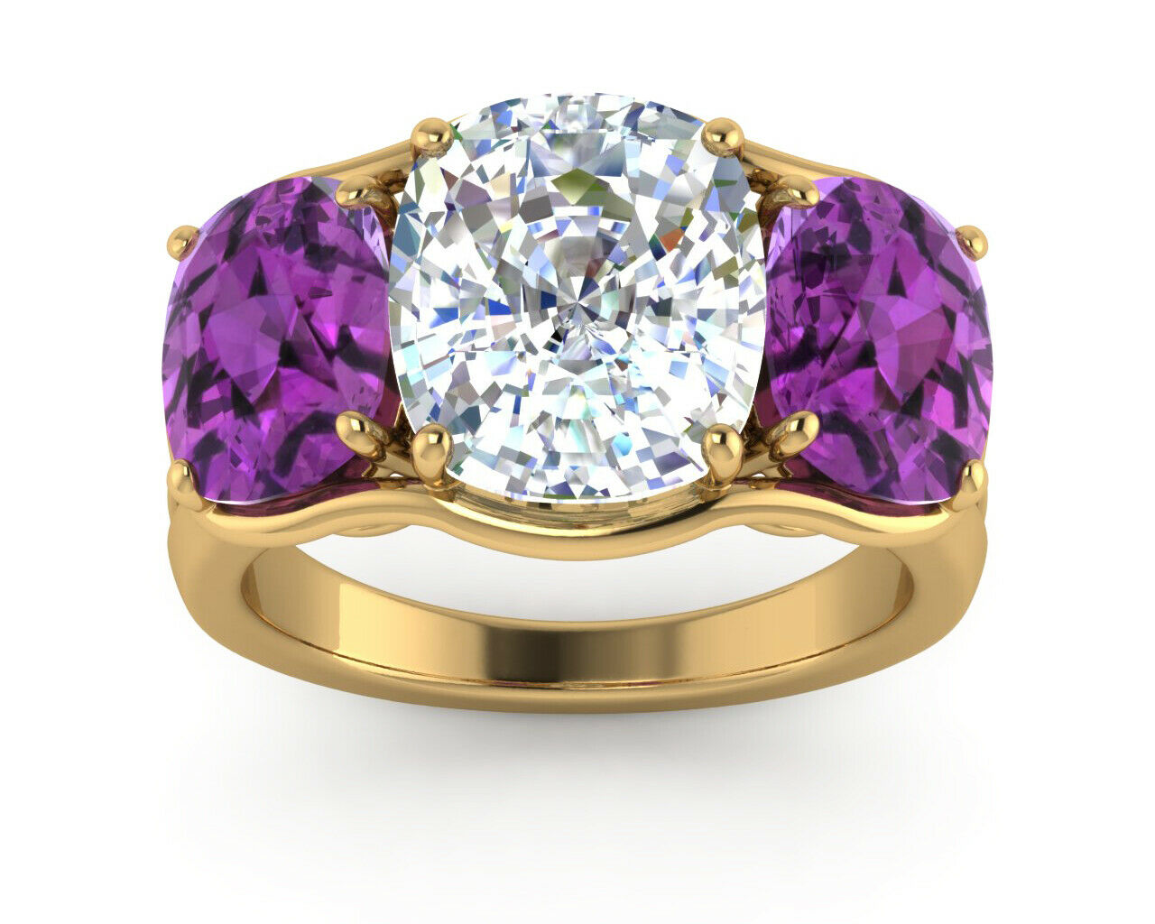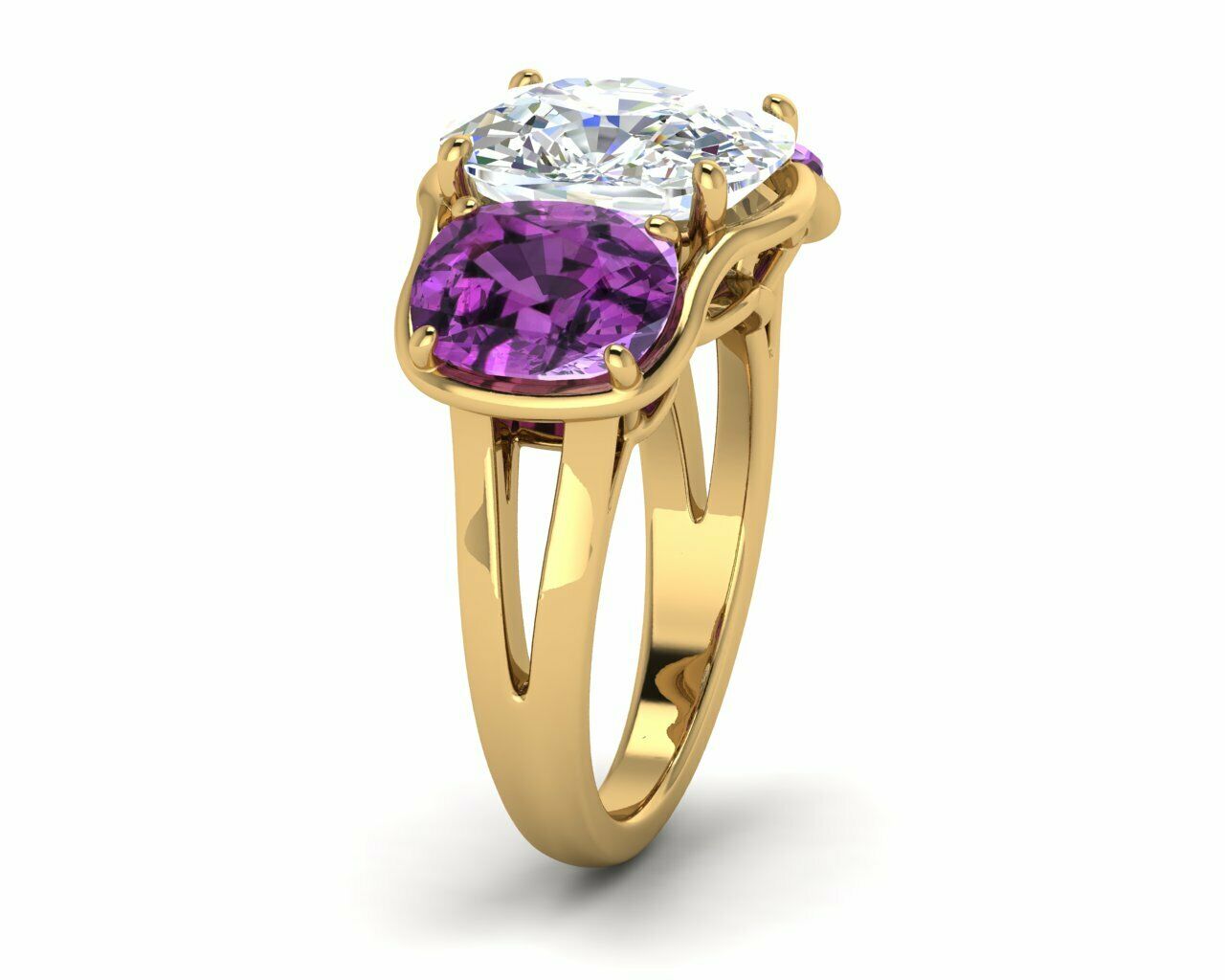 2ct Oval Cut Diamond Amethyst Three Stone Engagement Ring 14k Yellow Gold Finish