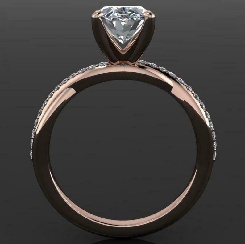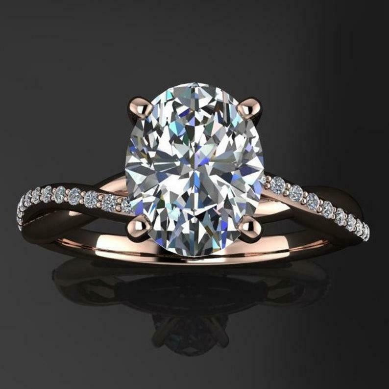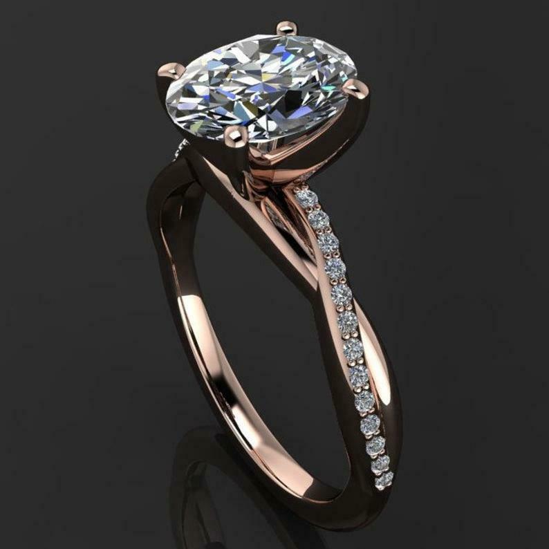2ct Oval Cut Diamond Engagement Ring 14k Rose Gold Finish Swirl Twist Solitaire