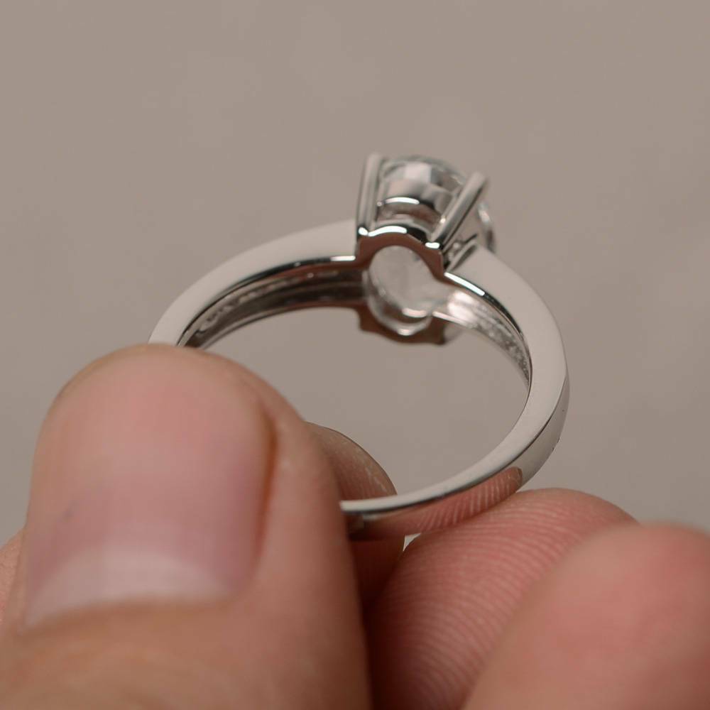 2ct Oval Cut Diamond Engagement Ring 14k White Gold Finish Accents Solitaire