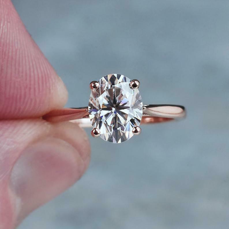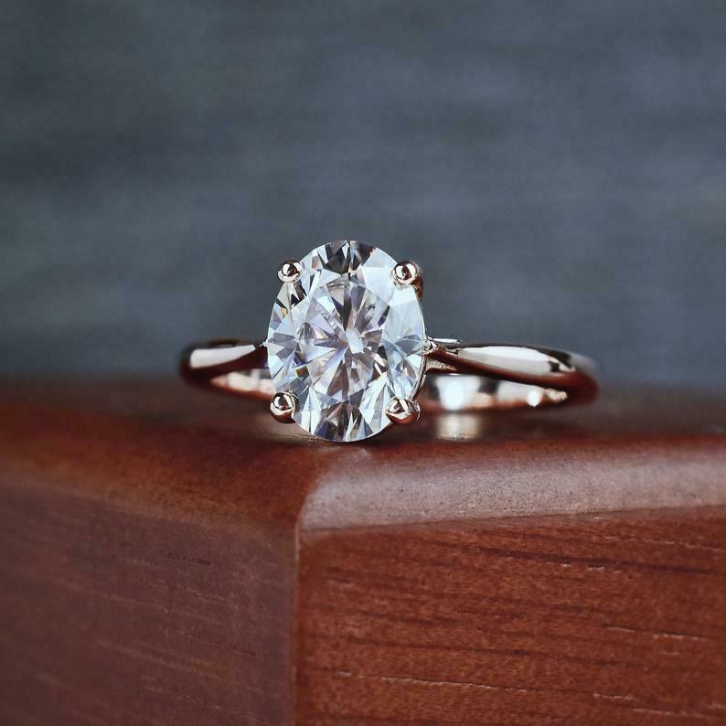 2ct Oval Cut Diamond Engagement Ring 4 Prong Solitaire Women 14k RoseGold Finish