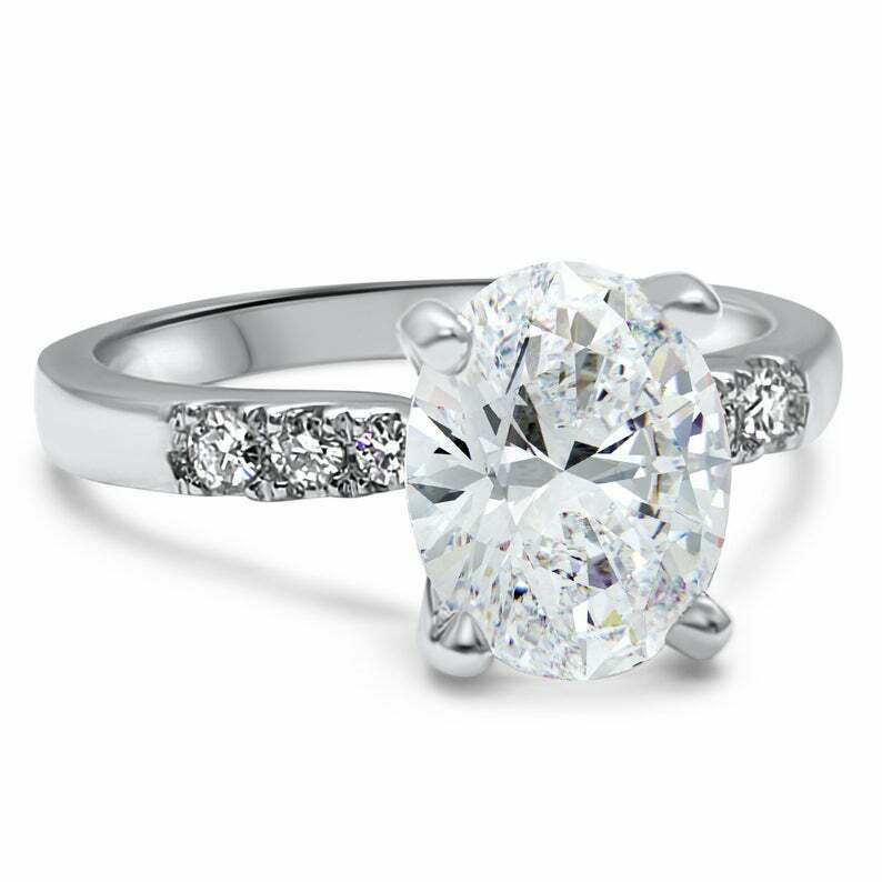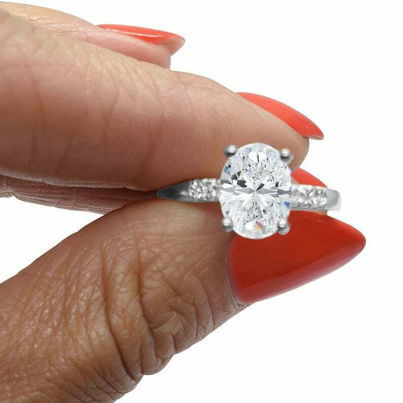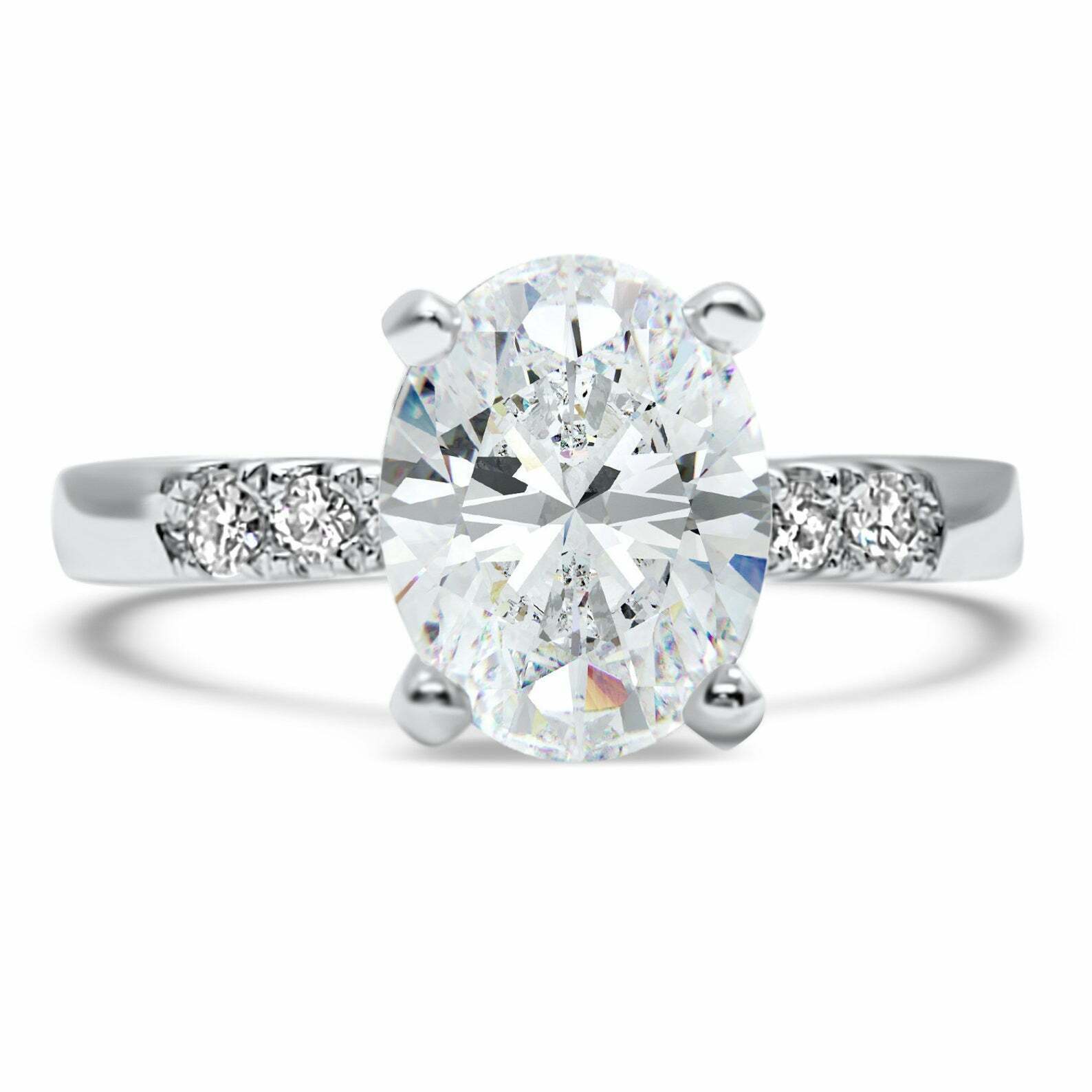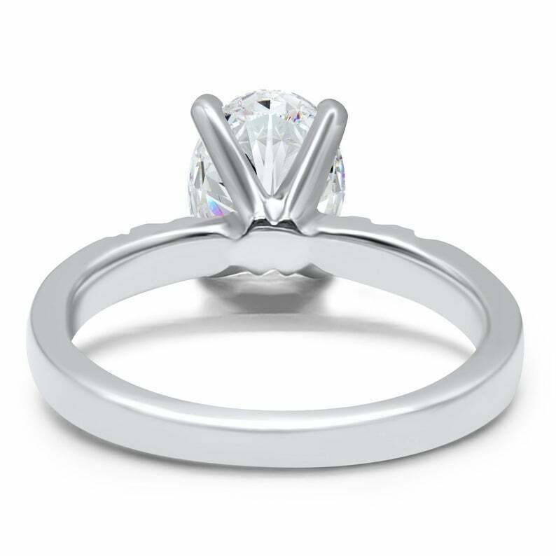 2ct Oval Cut Diamond Engagement Ring Accent with Solitaire 14k White Gold Finish