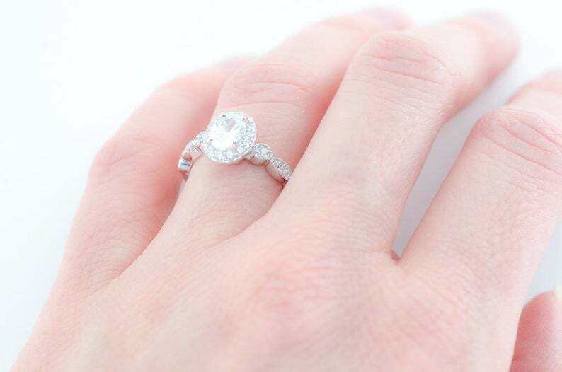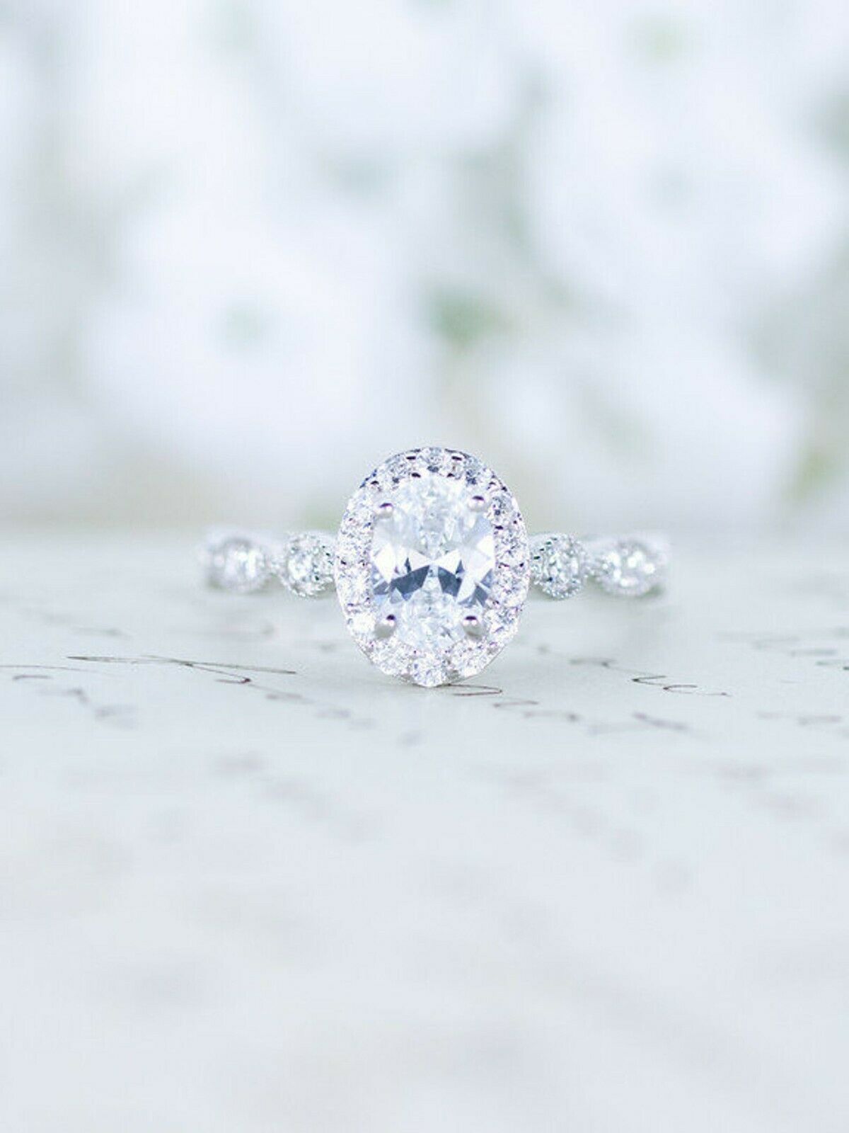 2ct Oval Cut Diamond Engagement Ring Halo 14k White Gold Over with Round Accents