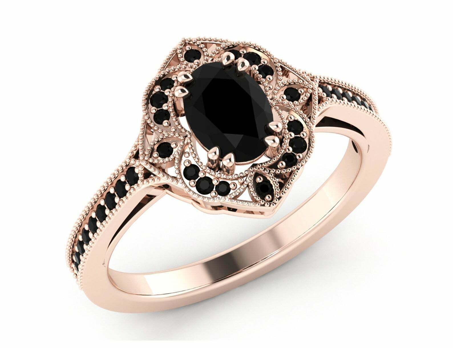 2ct Oval Cut Diamond Engagement Ring Milgrain Halo Solitaire 14k Rose Gold Finish
