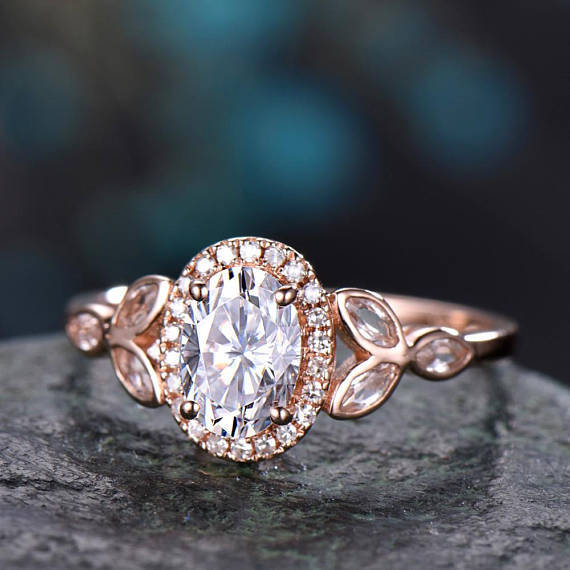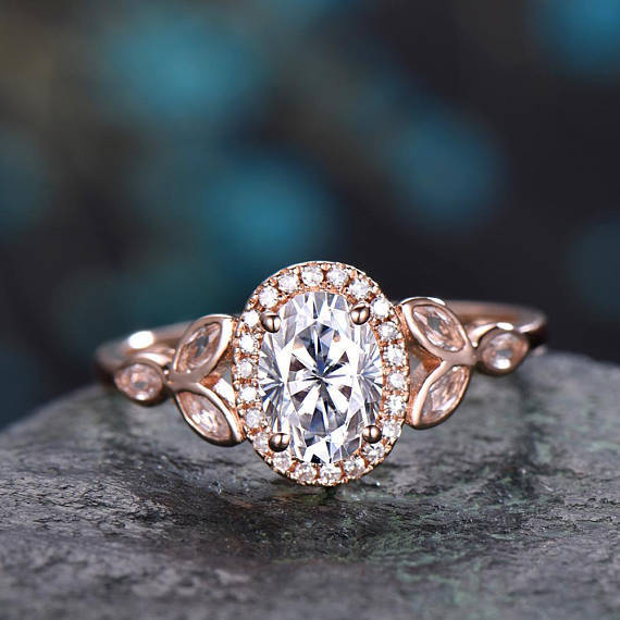 2ct Oval Cut Diamond Engagement Ring Morganite Leaf Accents 14k Rose Gold Finish