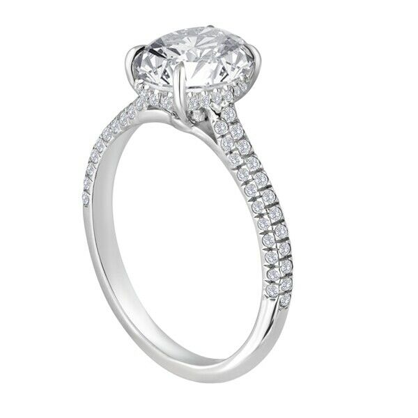 2ct Oval Cut Diamond Engagement Ring Three Row Accent Women 14k WhiteGold Finish