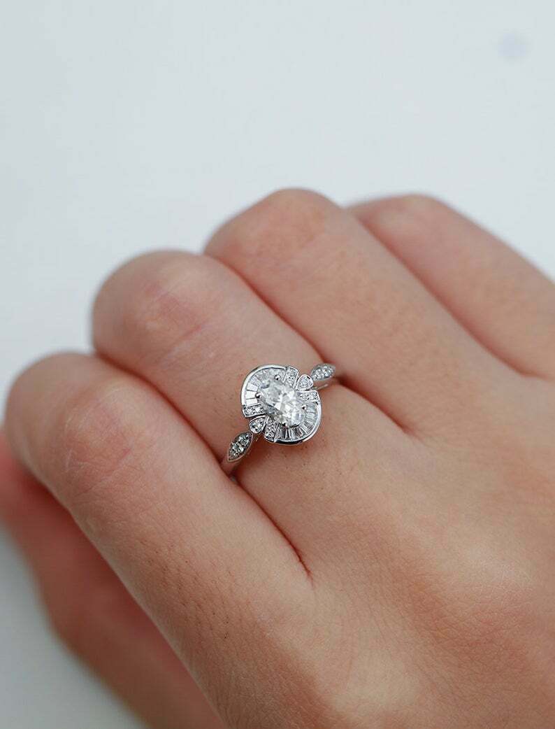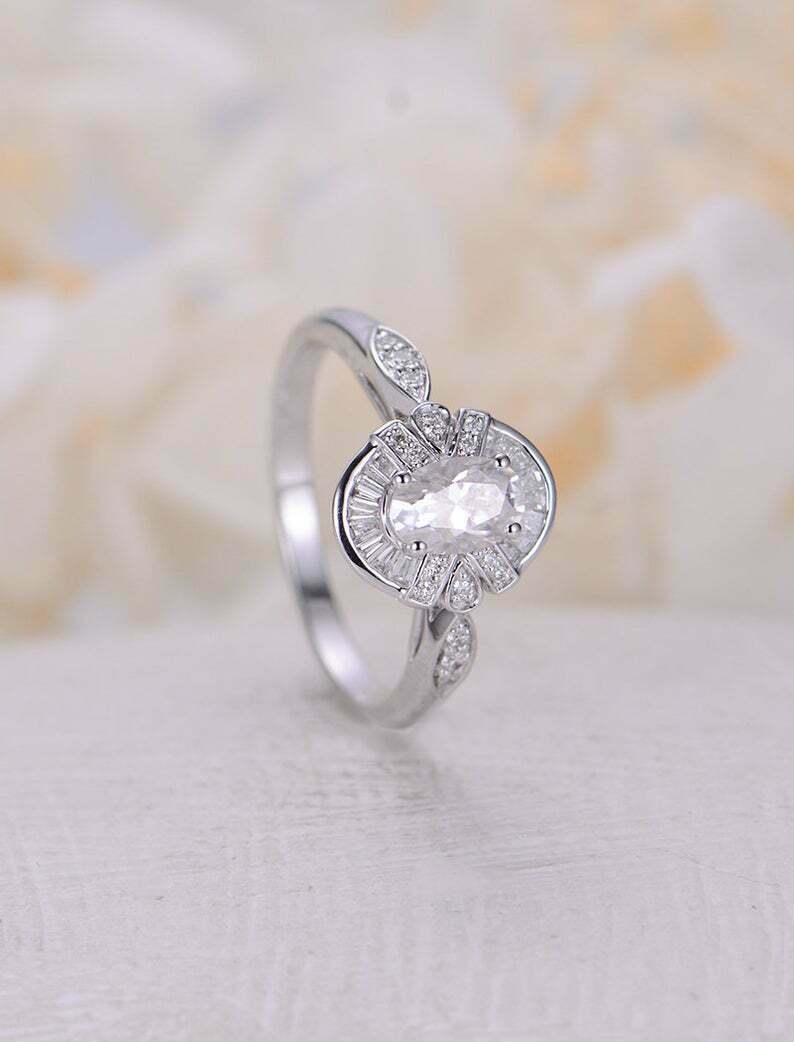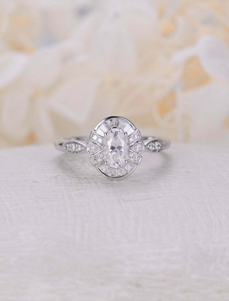 2ct Oval Cut Diamond Engagement Ring Vintage Art Deco Halo 14k White Gold Finish