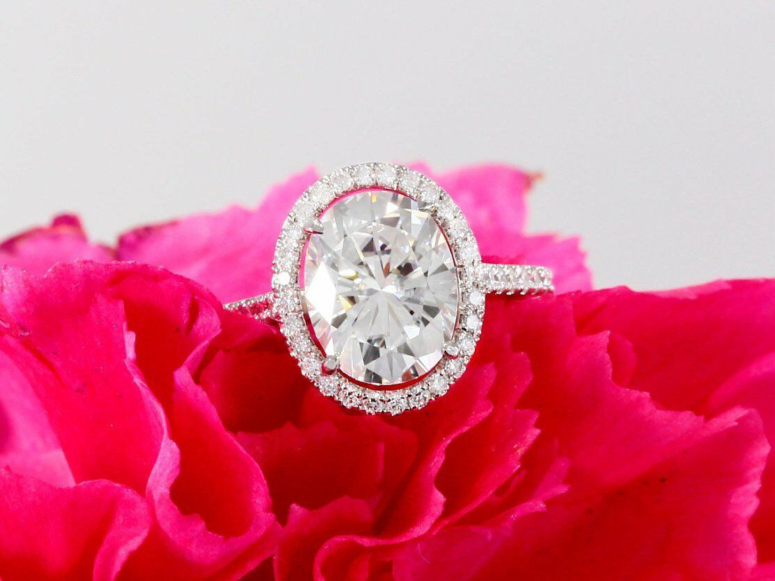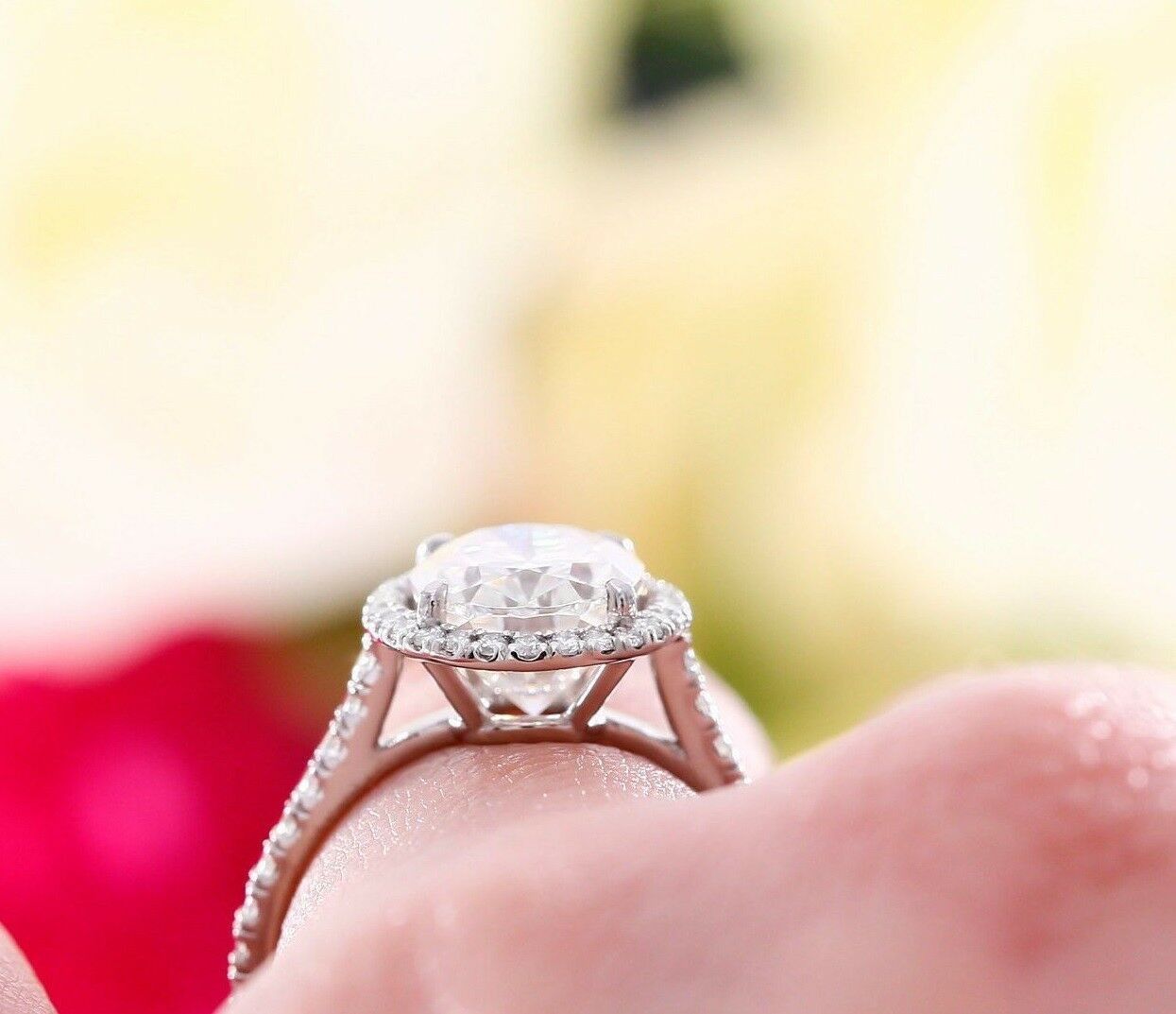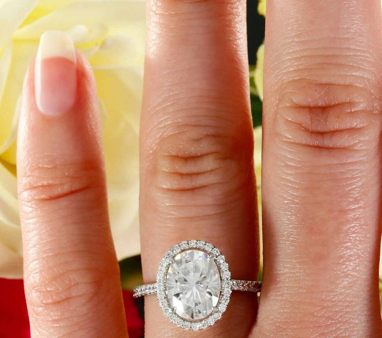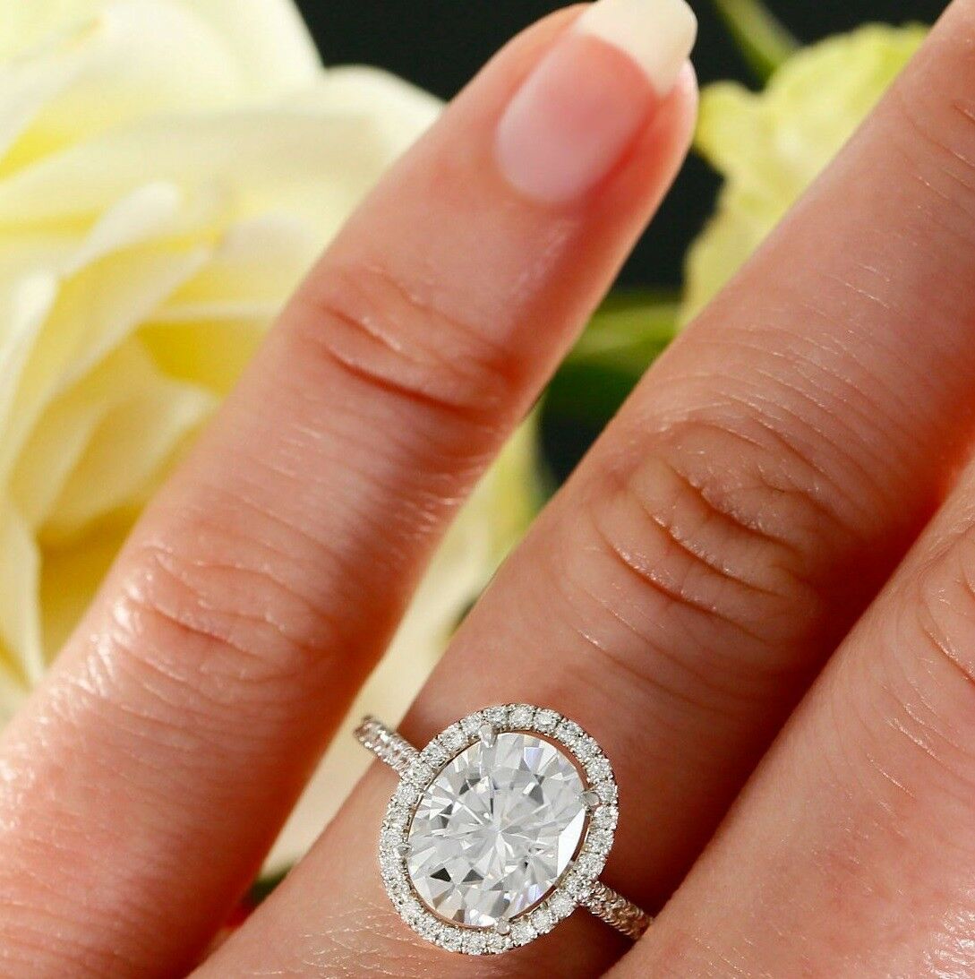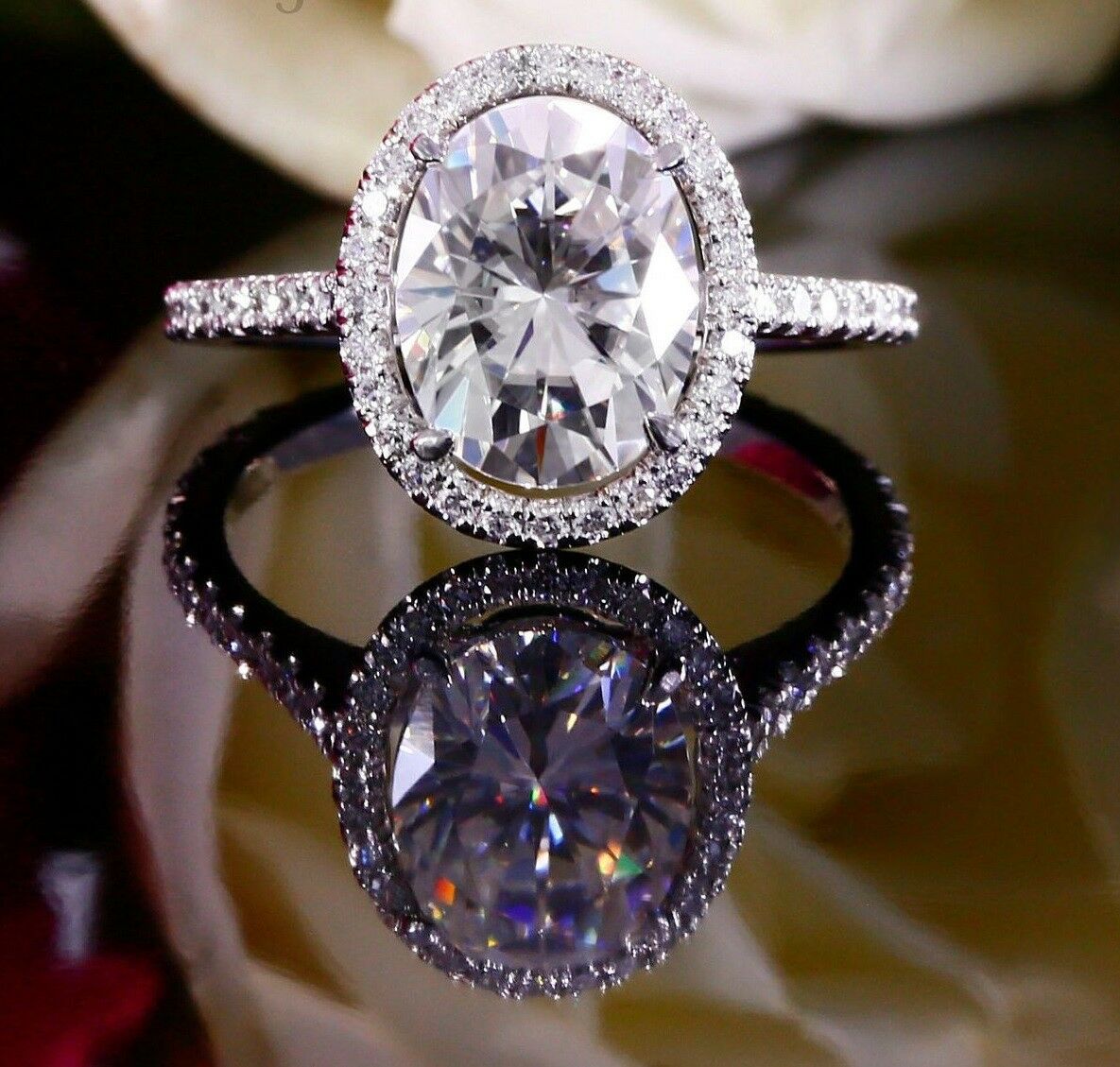 2ct Oval Cut Diamond Halo Solitaire Women Engagement Ring 18k White Gold Finish