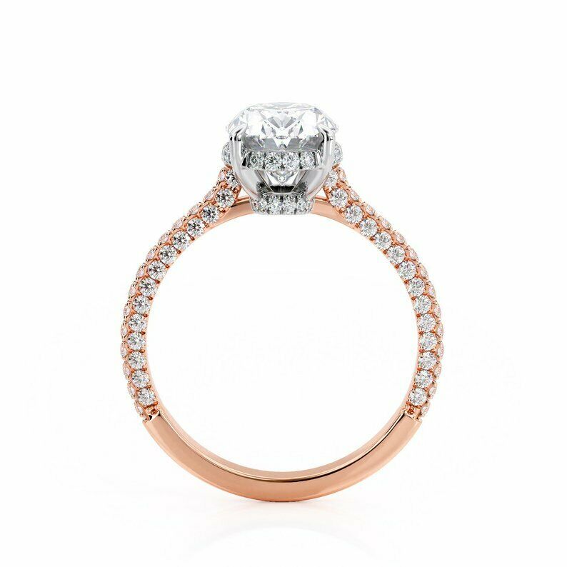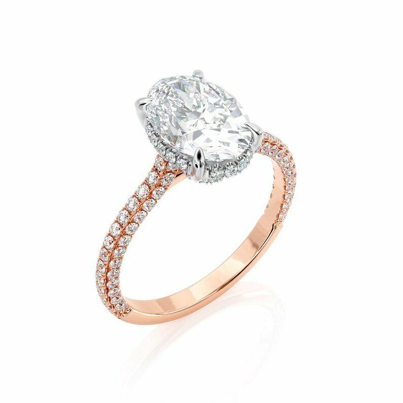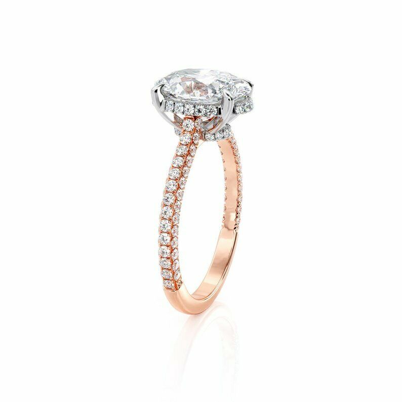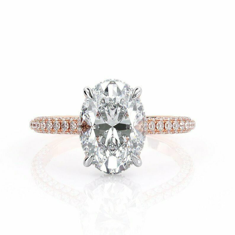 2ct Oval Cut Diamond Hidden Halo Engagement Ring 14k Rose Gold Over Round Accent