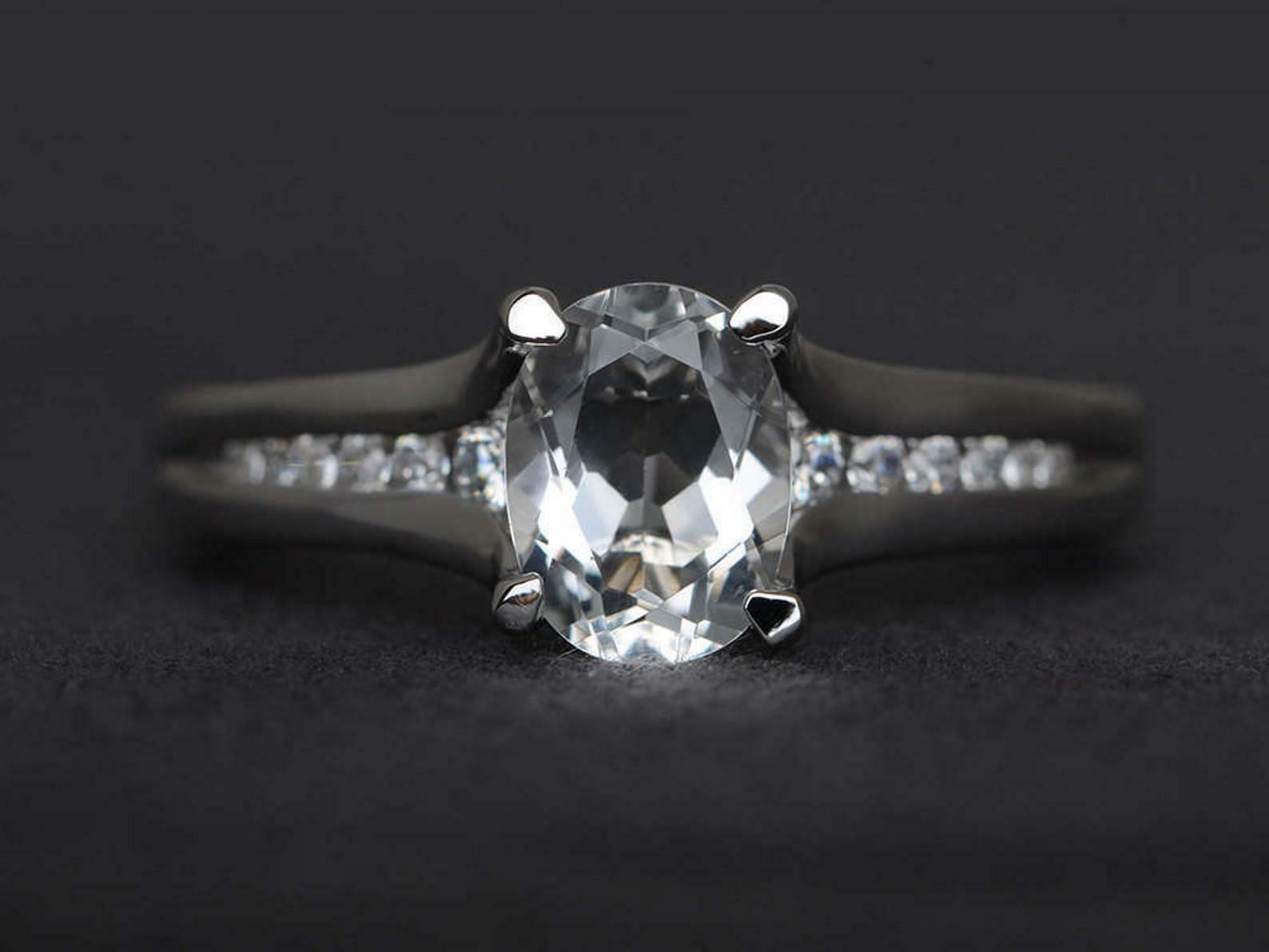 2ct Oval Cut Diamond Solitaire with Round Accent Ring 14k White Gold Finish