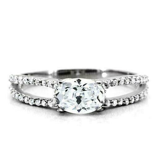 2ct Oval Cut Diamond Unique Split Band Engagement Ring 14K White Gold Finish