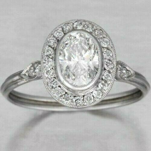 2Ct Oval Cut DVVS1 Diamond Vintage Halo Engagement Ring 14K White Gold Finish